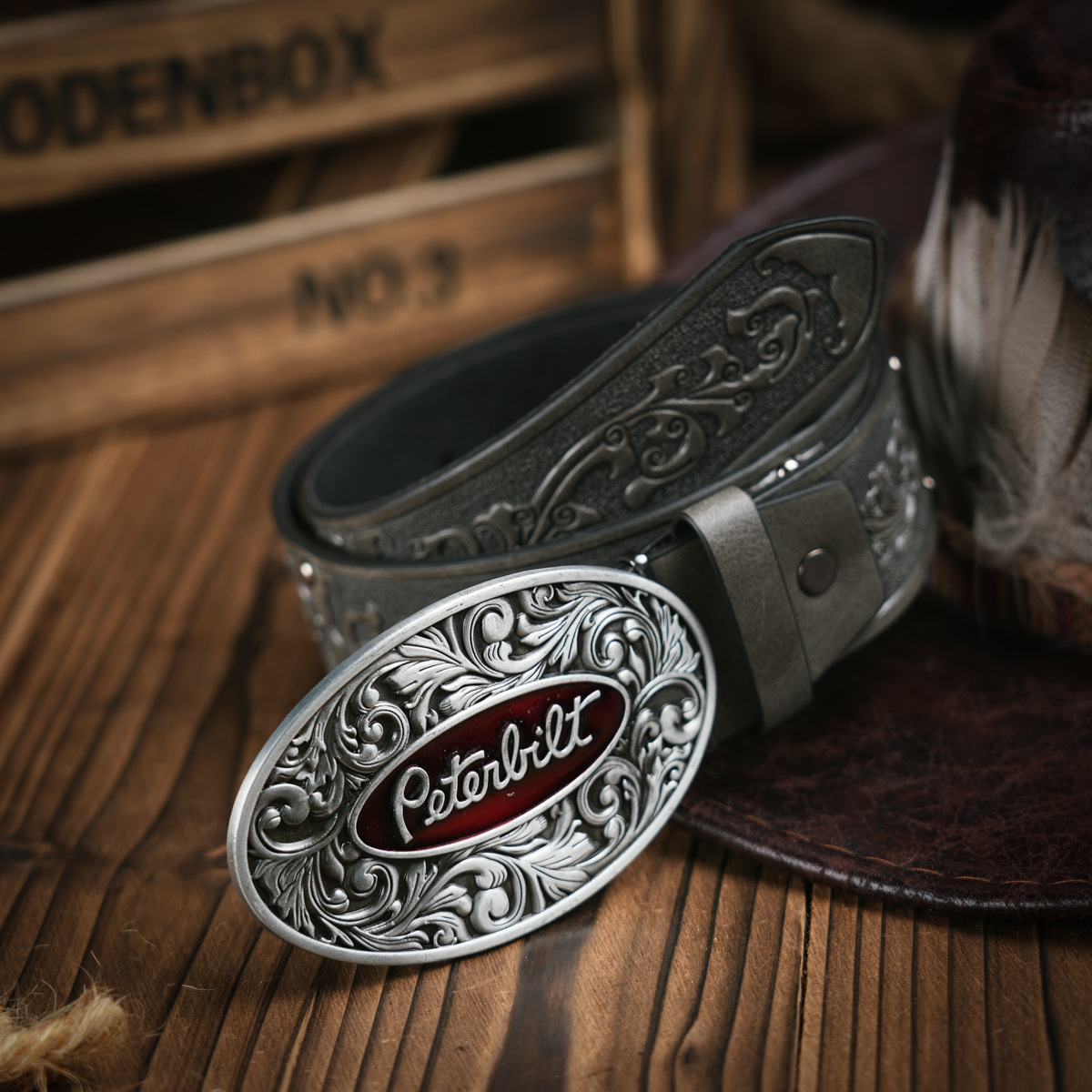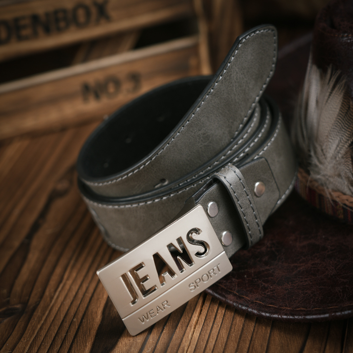 • 회색 PU + 고대 실버 합금 버클 [독수리]]
