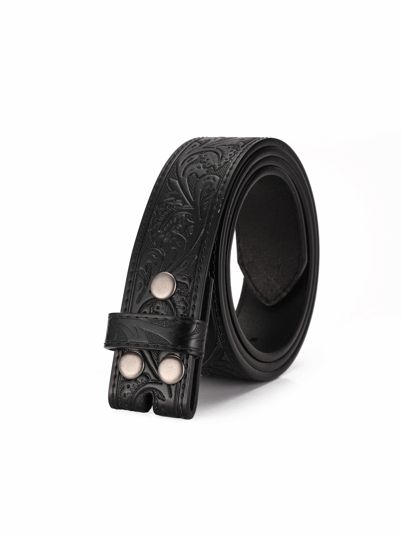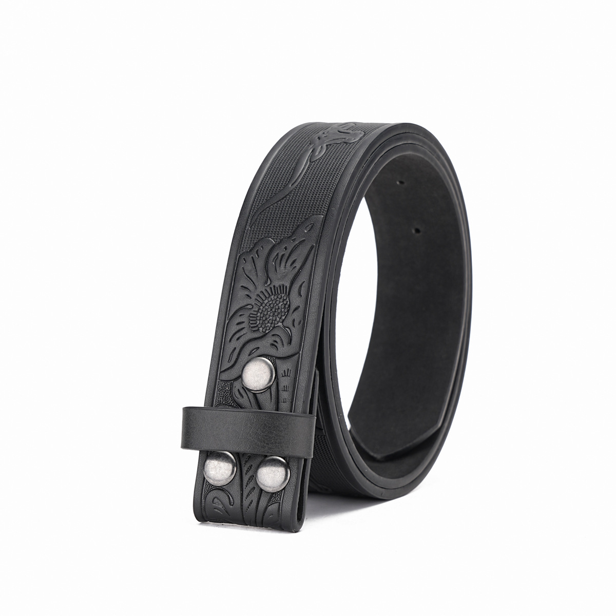 • 레트로 패턴 천연 가죽 벨트 스트랩 블랙