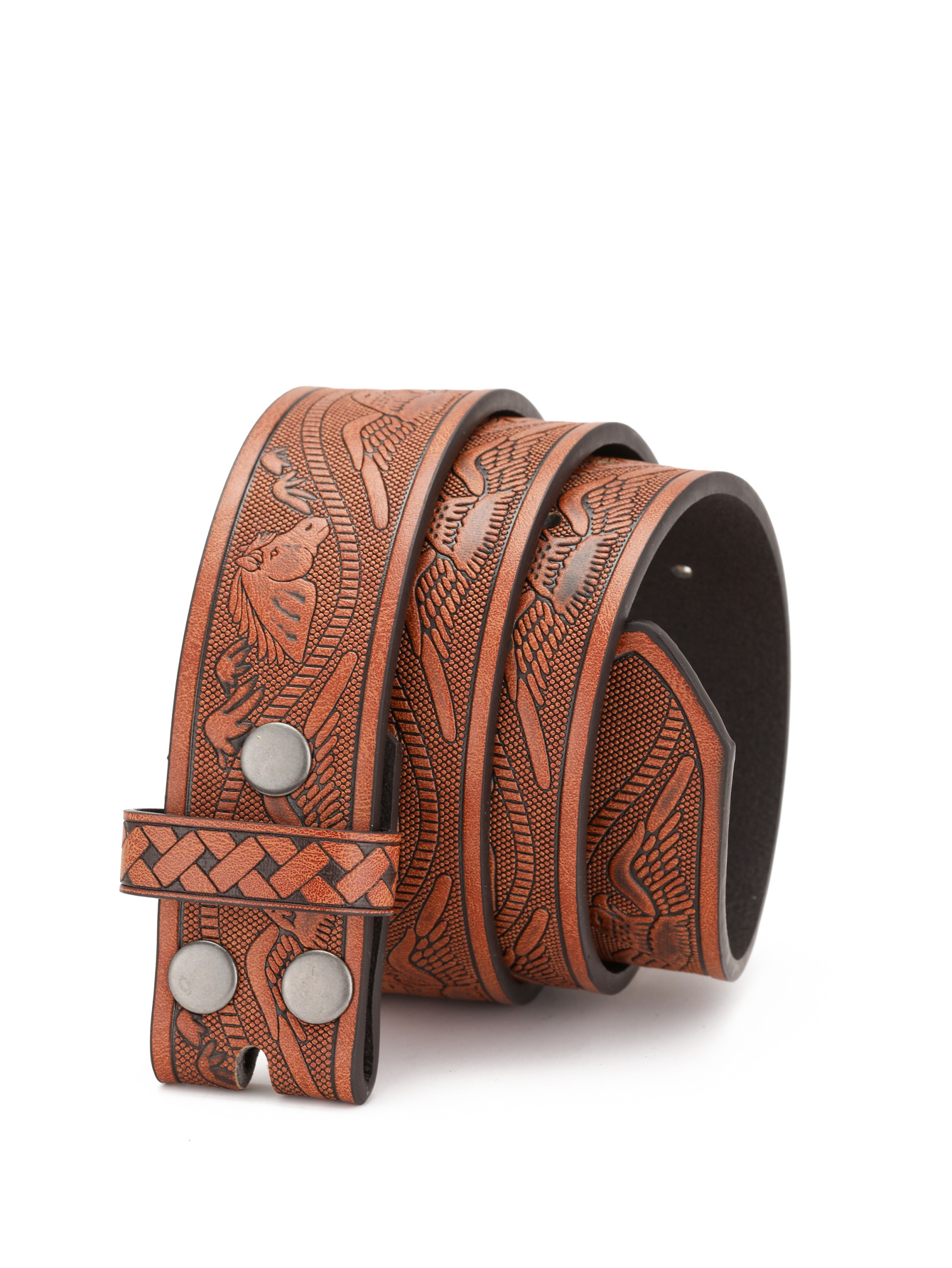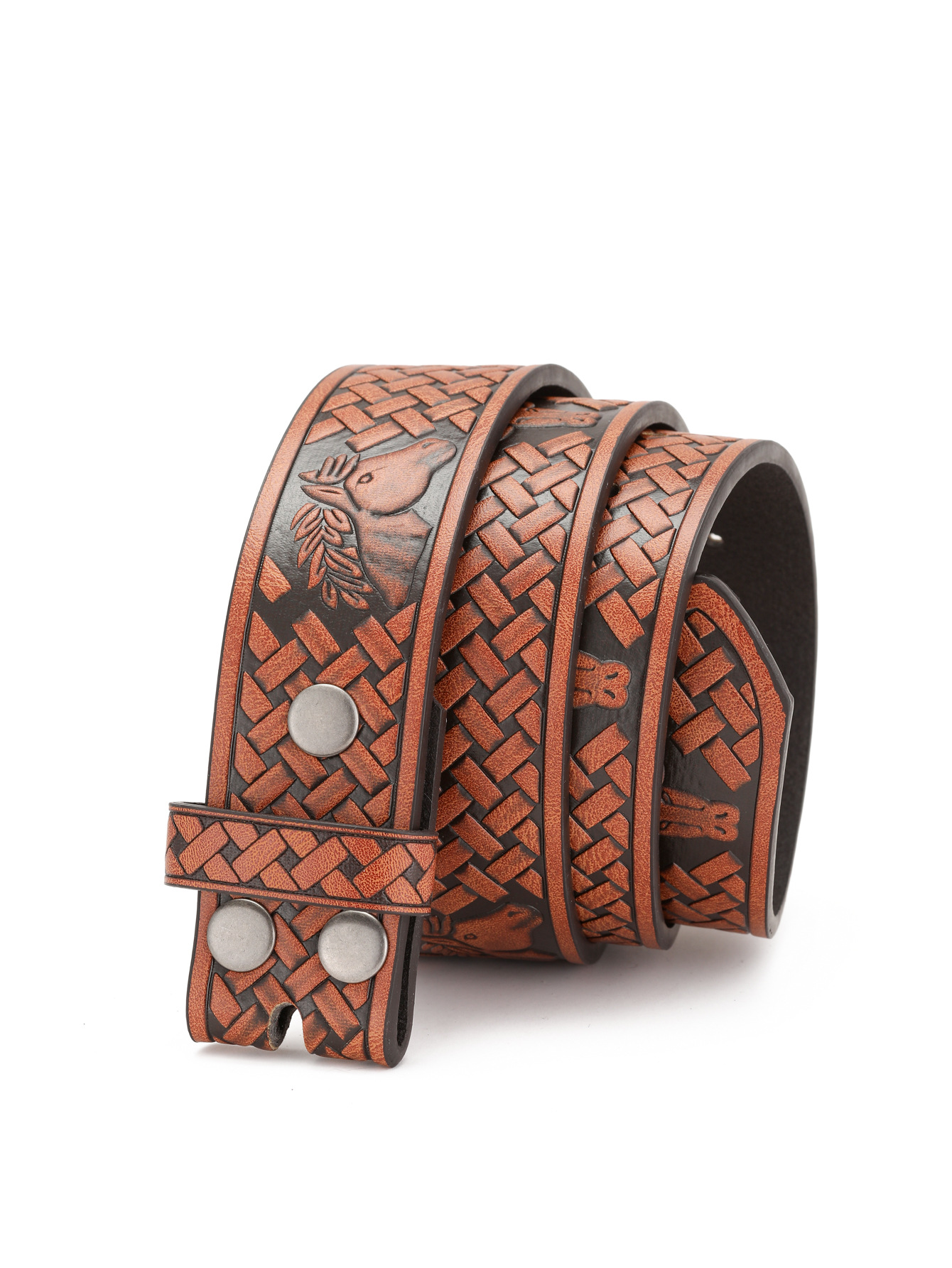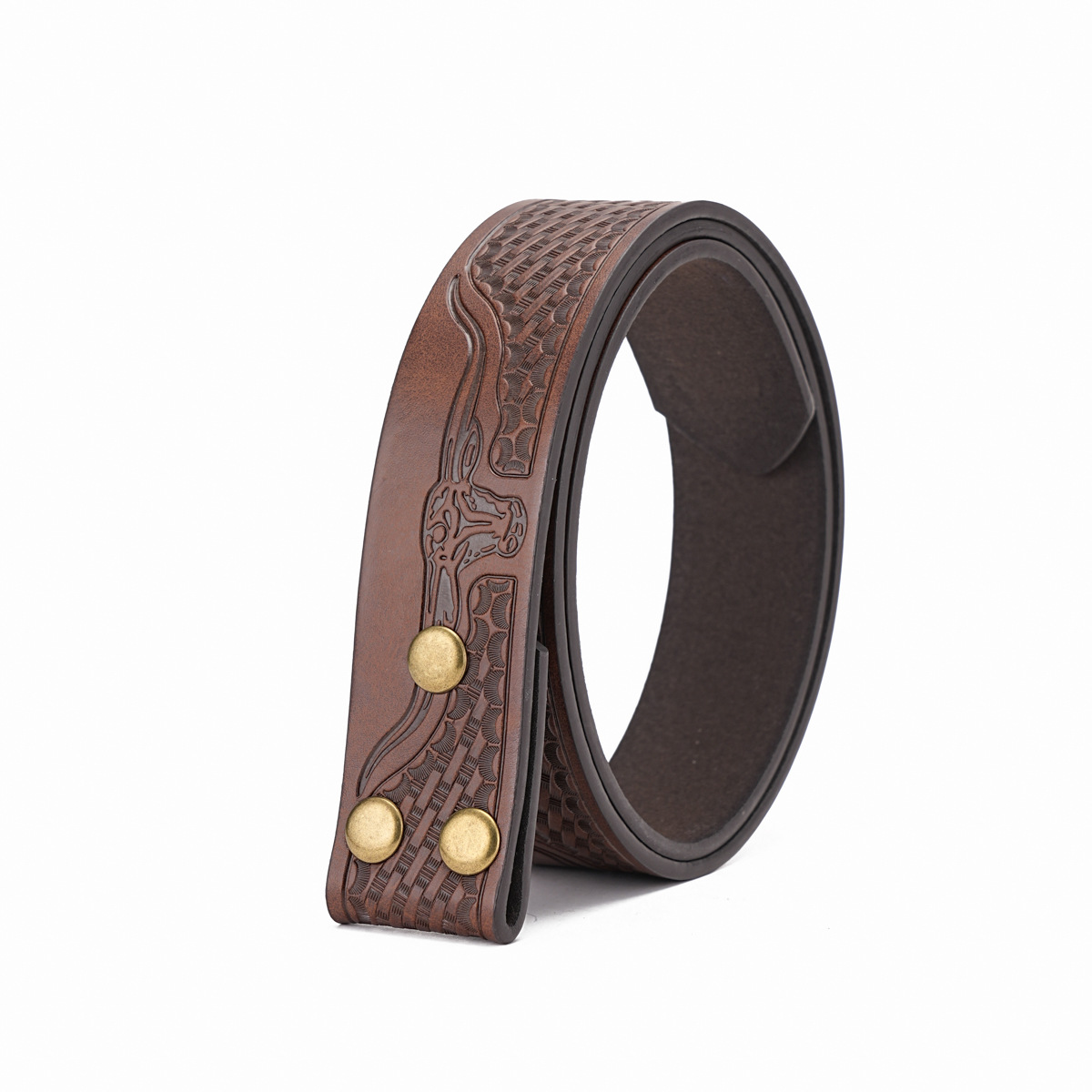 • 레트로 패턴 천연 가죽 벨트, 카멜 색상