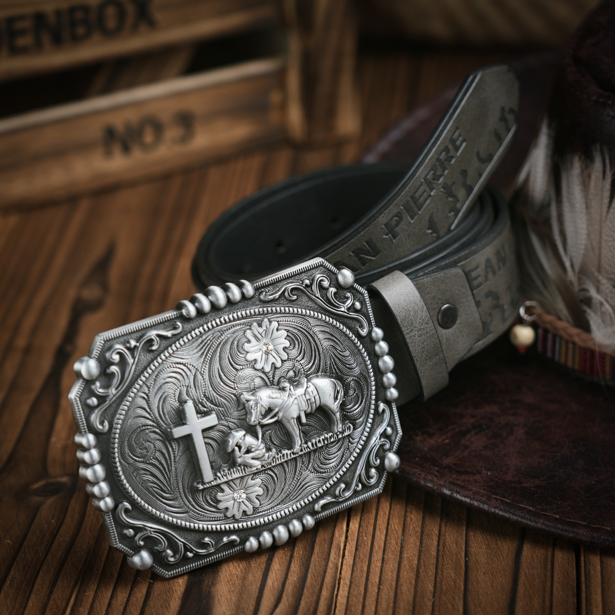 • 말 머리와 소 머리 복고풍 PU 벨트