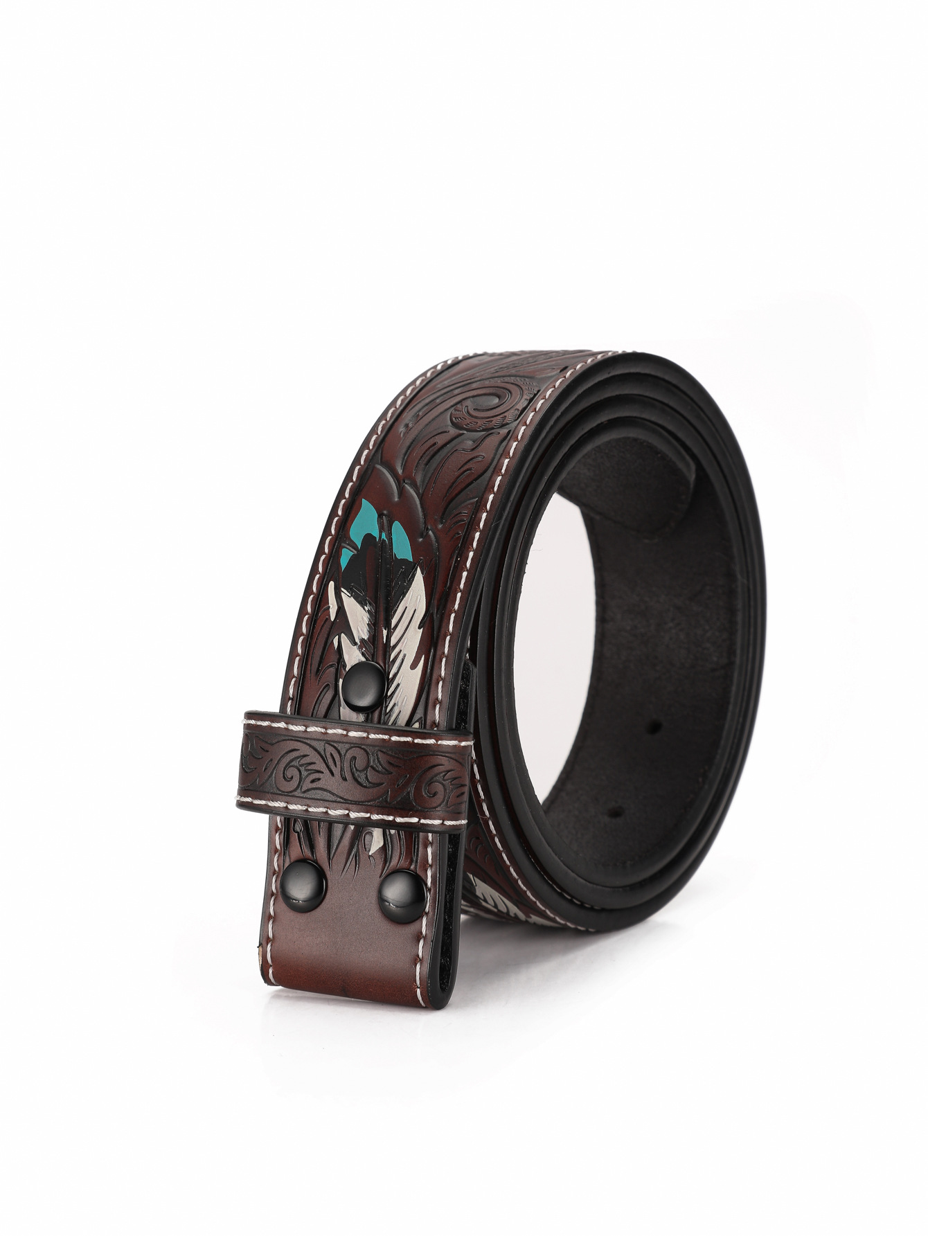 • 레트로 패턴 가죽 벨트 스트립 다크 커피