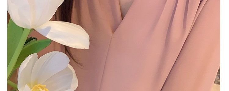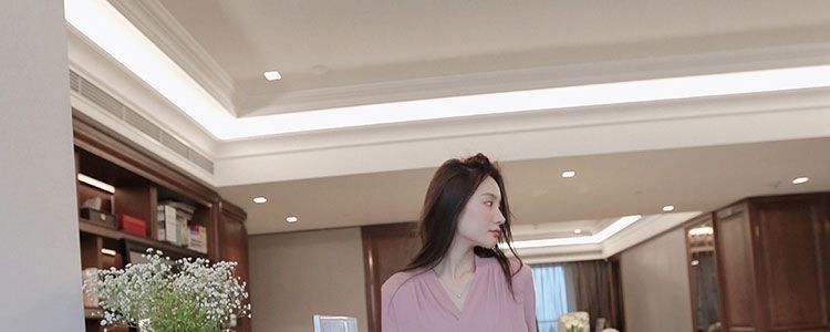 프랑스 스타일의 하이 엔드 디자인 V 넥 셔츠 2024 봄과 가을 새로운 홍콩 스타일 우아한 달콤한 쉬폰 셔츠 탑