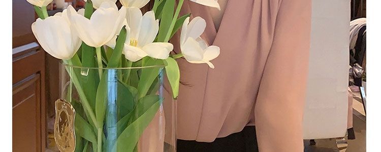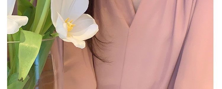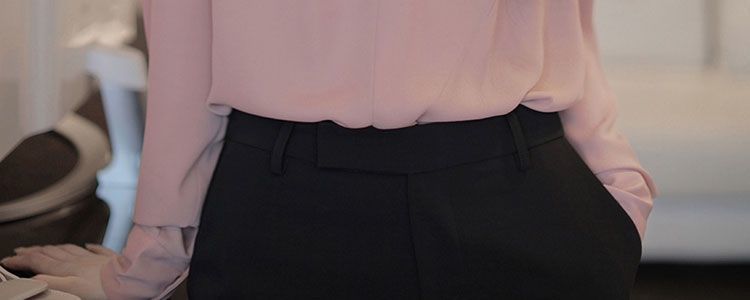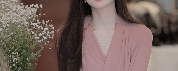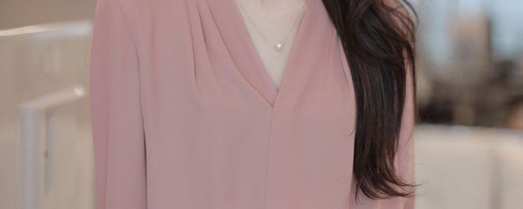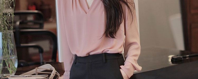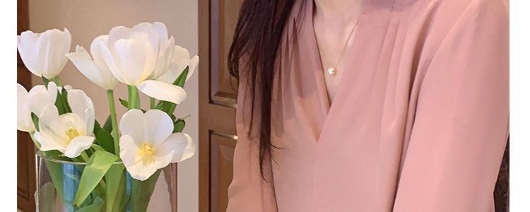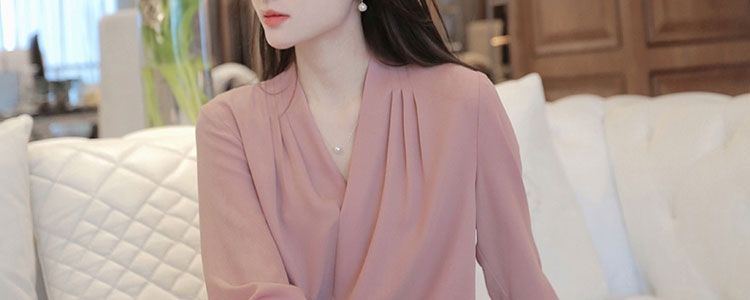 프랑스 스타일의 하이 엔드 디자인 V 넥 셔츠 2024 봄과 가을 새로운 홍콩 스타일 우아한 달콤한 쉬폰 셔츠 탑스토어 가기