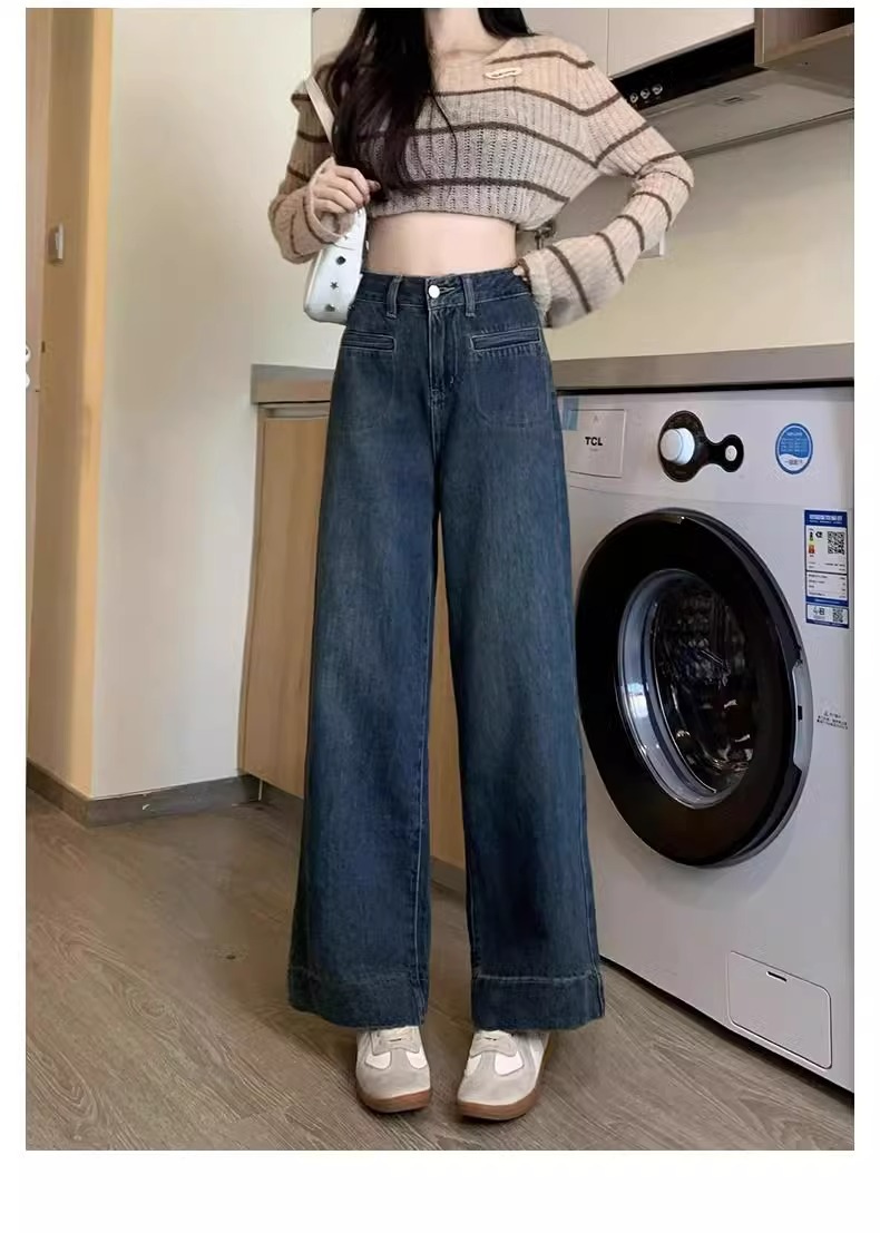 틈새 다재다능한 복고풍 넓은 다리 청바지 봄과 가을 새로운 여성 의류 2024 새로운 높은 허리 슬리밍 느슨한 스트레이트 바지스토어 가기