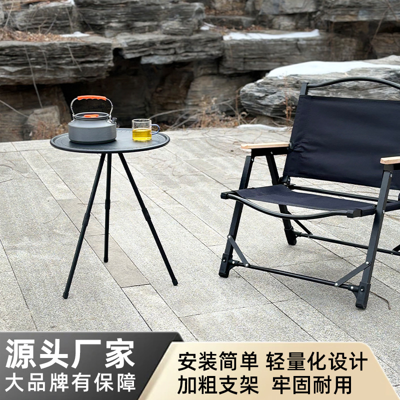 야외 휴대용 접이식 테이블 삼각형 지원 작은 원형 테이블 울트라 라이트 캠핑 테이블과 의자 조정 가능한 원형 테이블 간단한 티 테이블