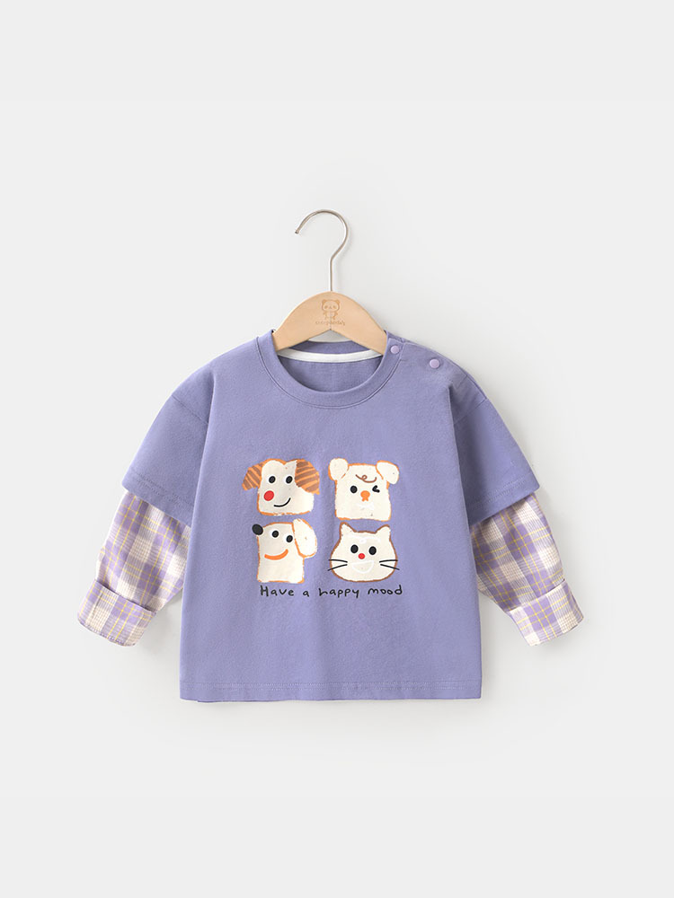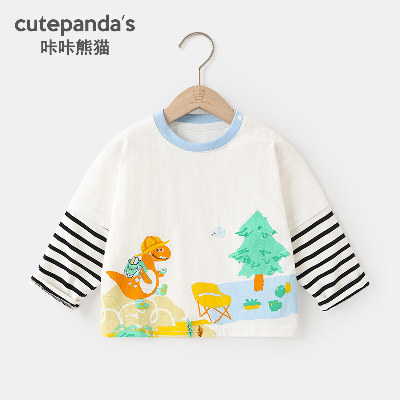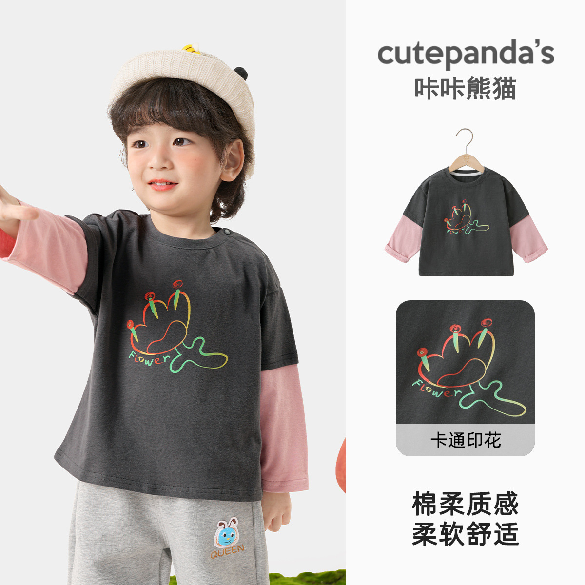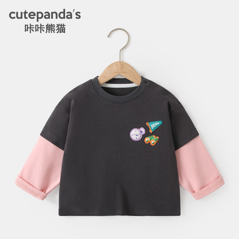 카카 팬더 아기 투피스 스타일 아동 긴팔 티셔츠 봄옷 남아 여아 이너웨어 베이비 상의