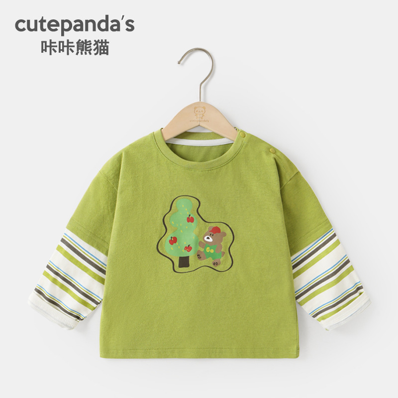 카카 팬더 아기 투피스 스타일 아동 긴팔 티셔츠 봄옷 남아 여아 이너웨어 베이비 상의스토어 가기