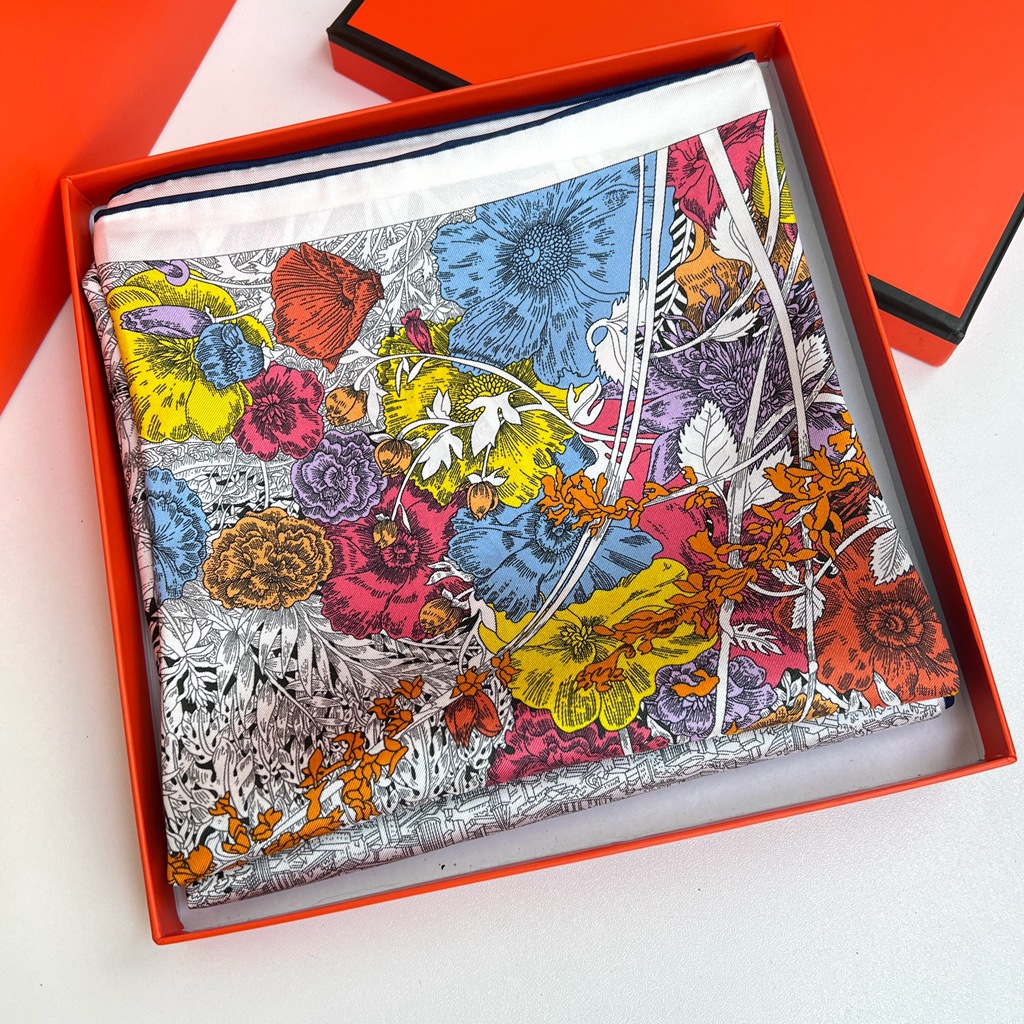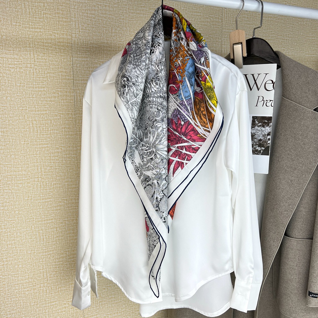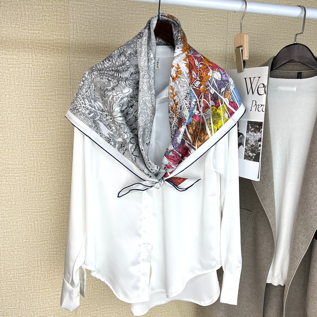 [자연으로 돌아 가기] 클래식 올 매치 90 실크 트윌 대형 스퀘어 스카프 봄과 가을 숄 뽕나무 실크 스카프 여성