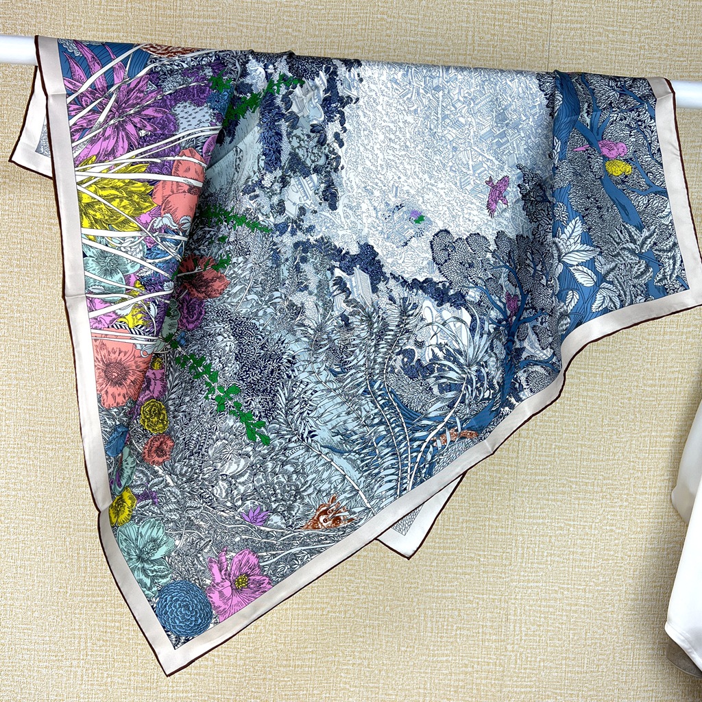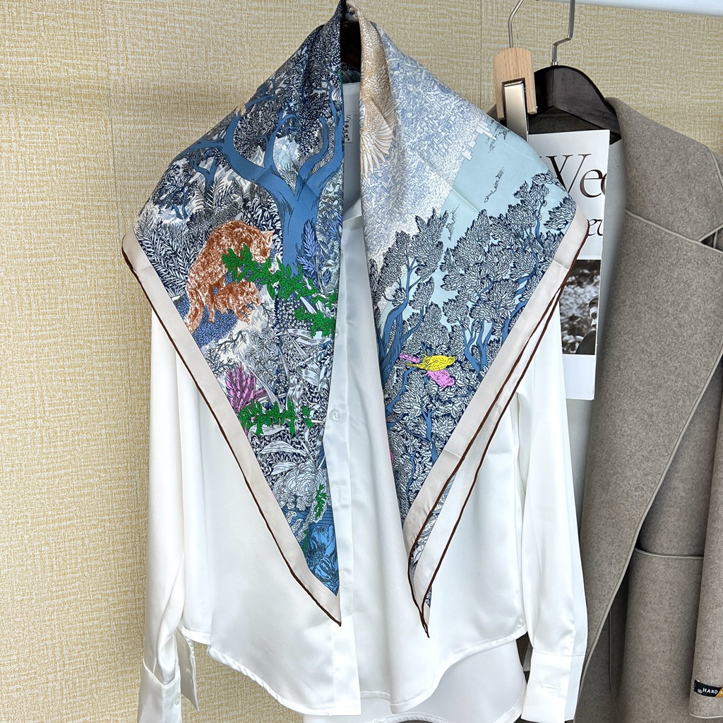 [자연으로 돌아 가기] 클래식 올 매치 90 실크 트윌 대형 스퀘어 스카프 봄과 가을 숄 뽕나무 실크 스카프 여성스토어 가기