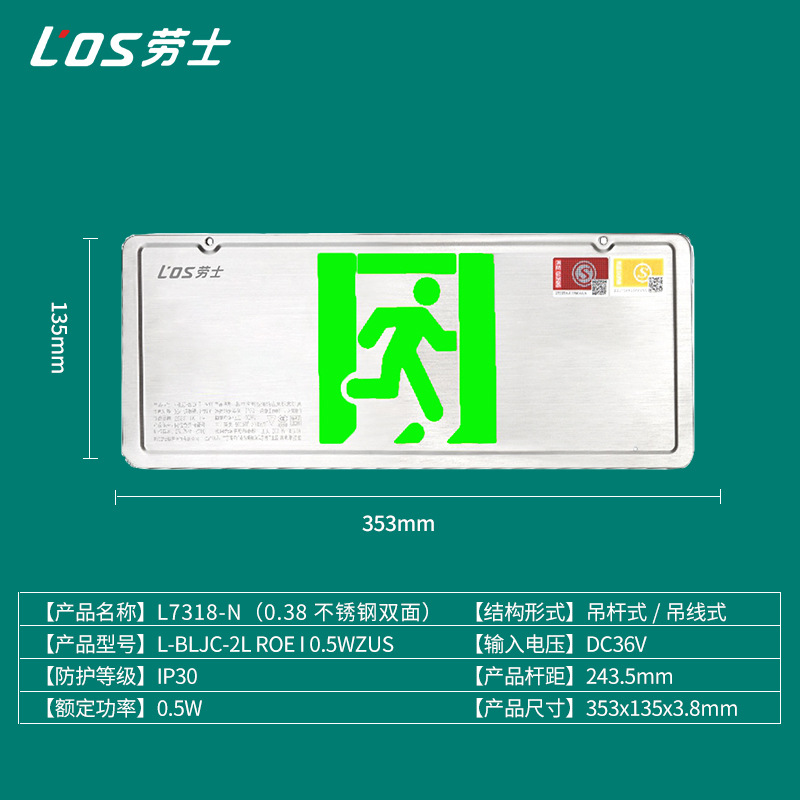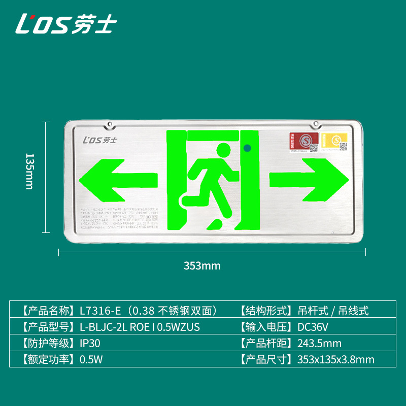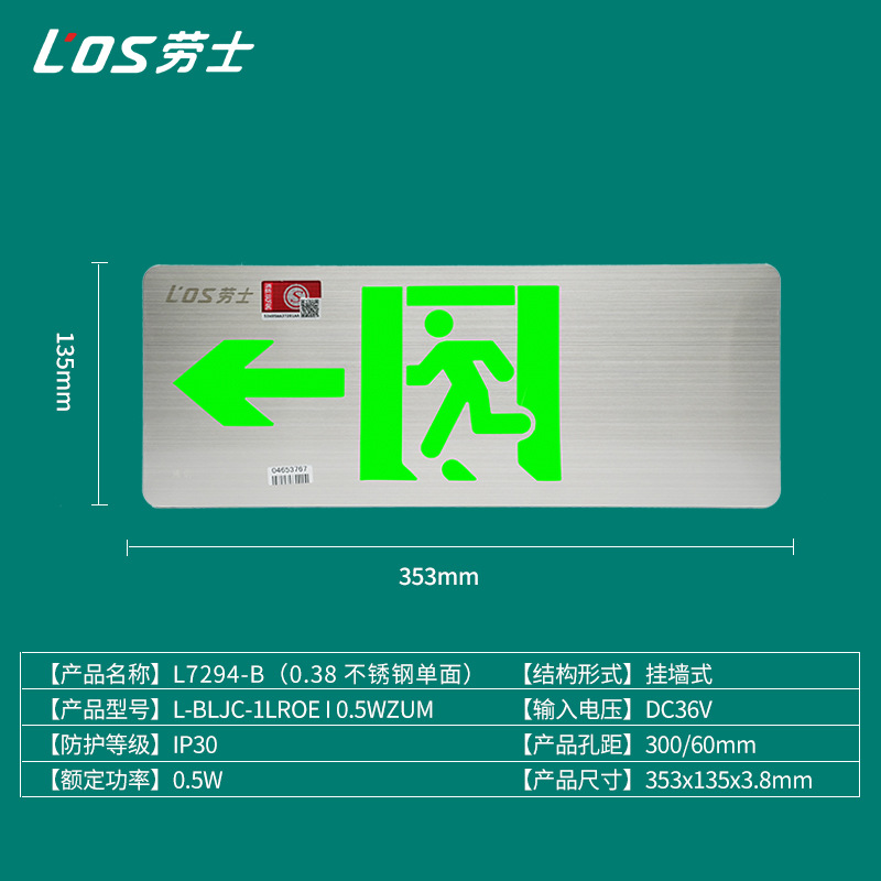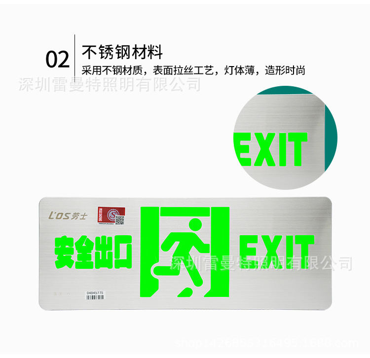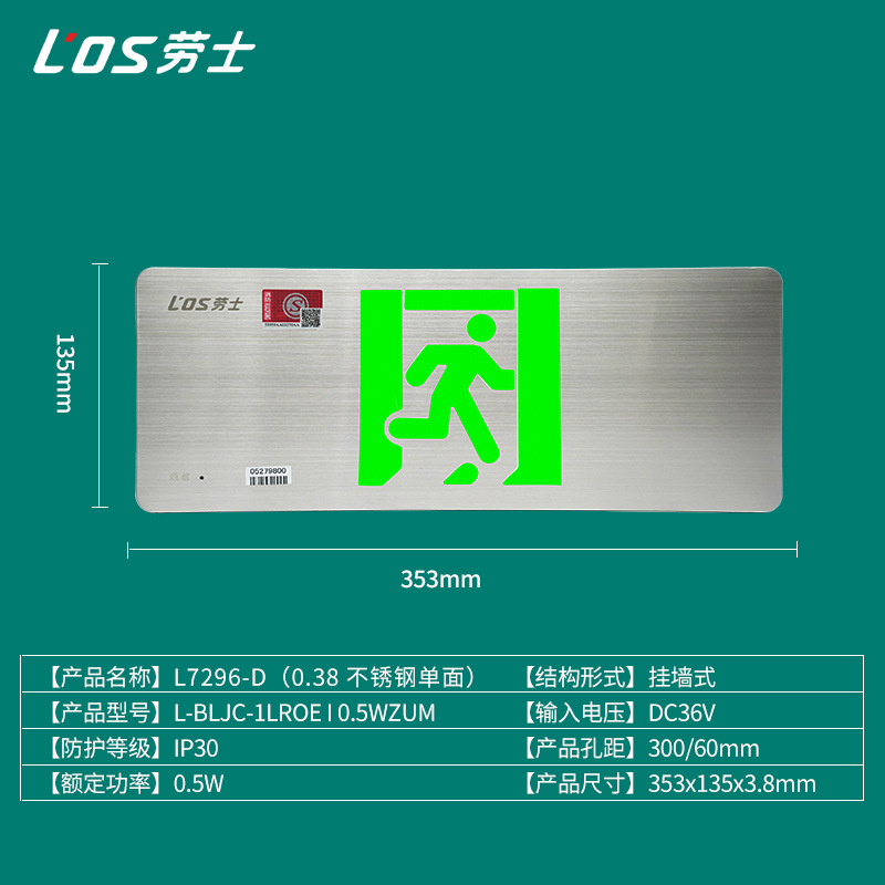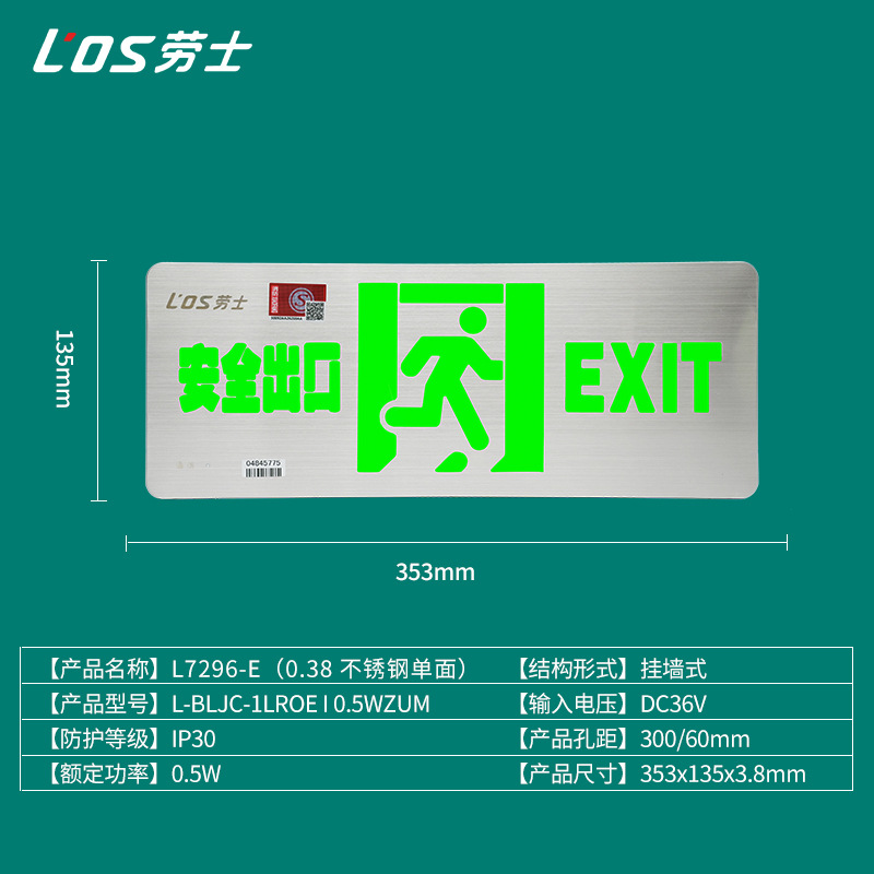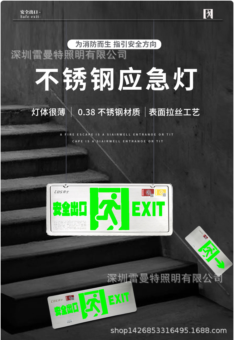 로리 스테인레스 스틸 0.38 초박형 36V 화재 비상 조명 안전 출구 표시등 벽걸이 대피 표지등스토어 가기