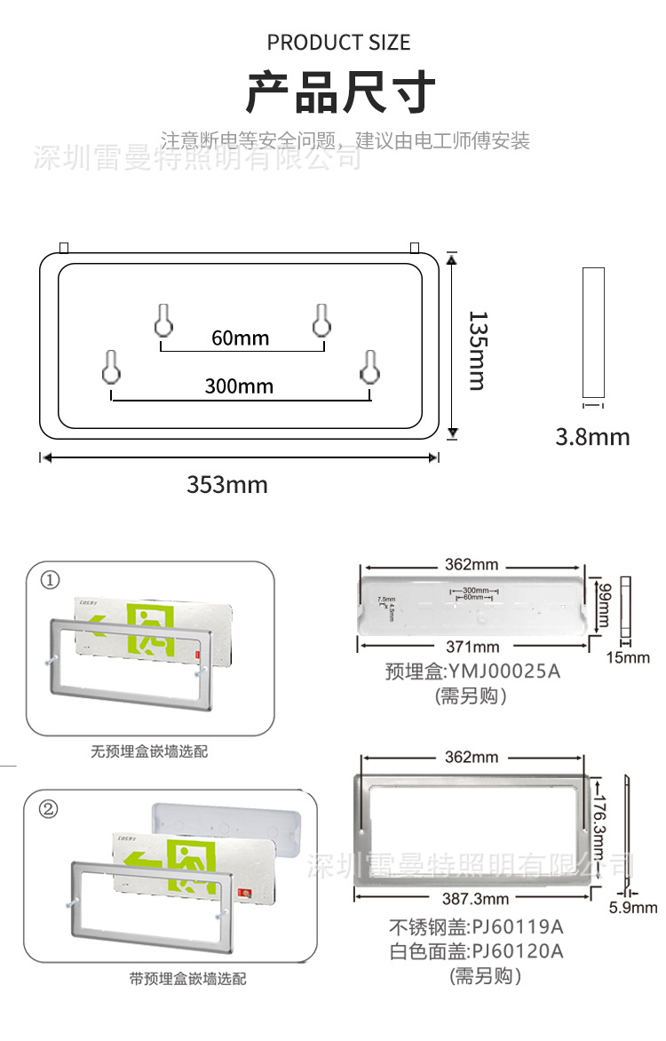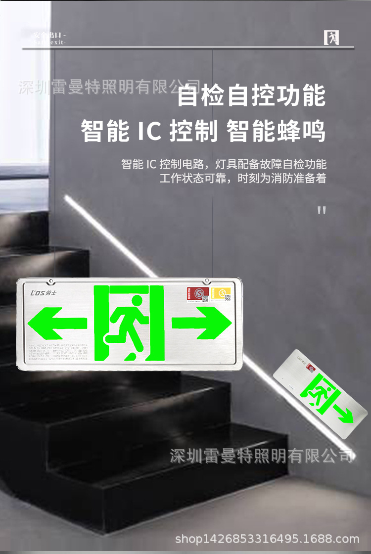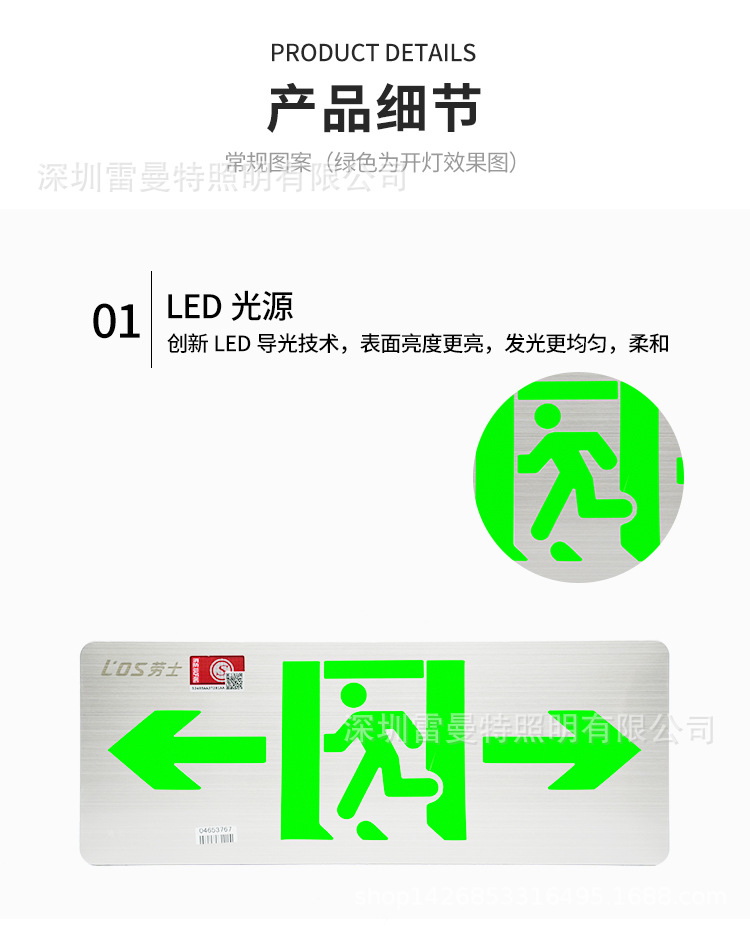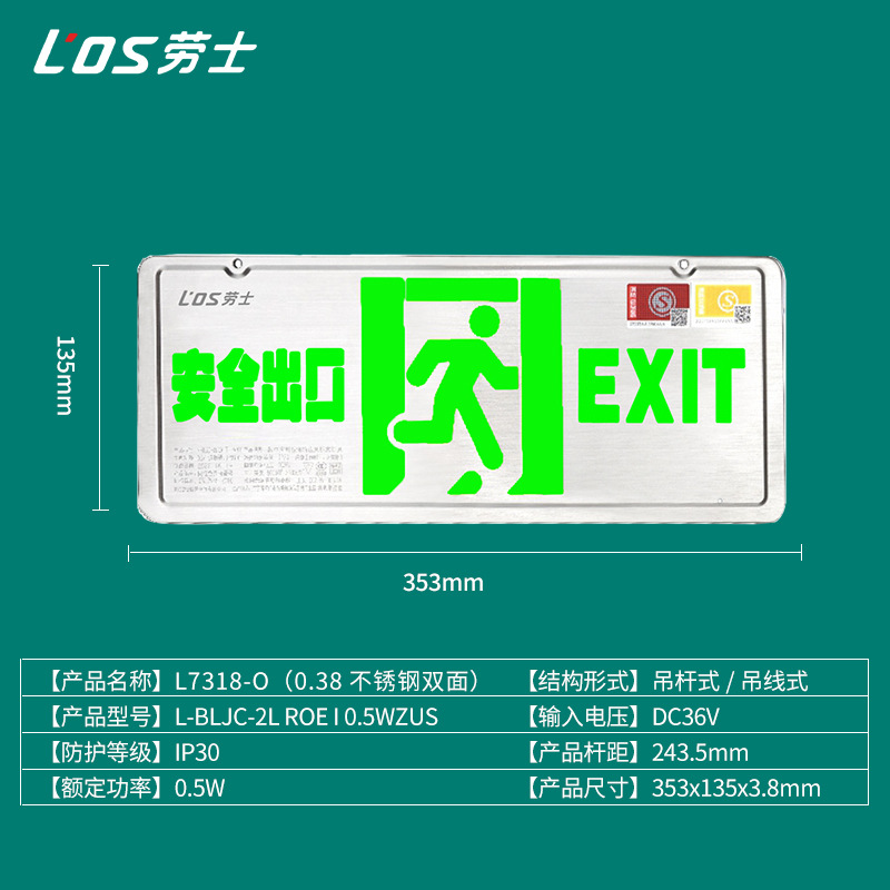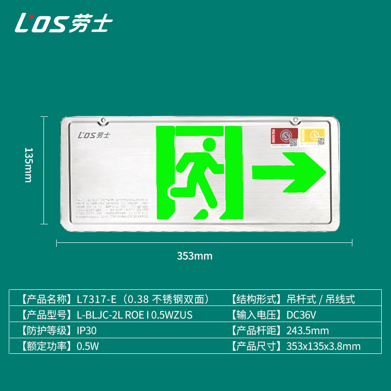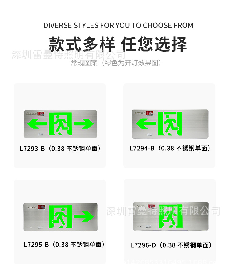 로리 스테인레스 스틸 0.38 초박형 36V 화재 비상 조명 안전 출구 표시등 벽걸이 대피 표지등스토어 가기