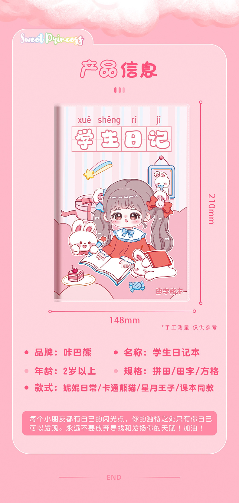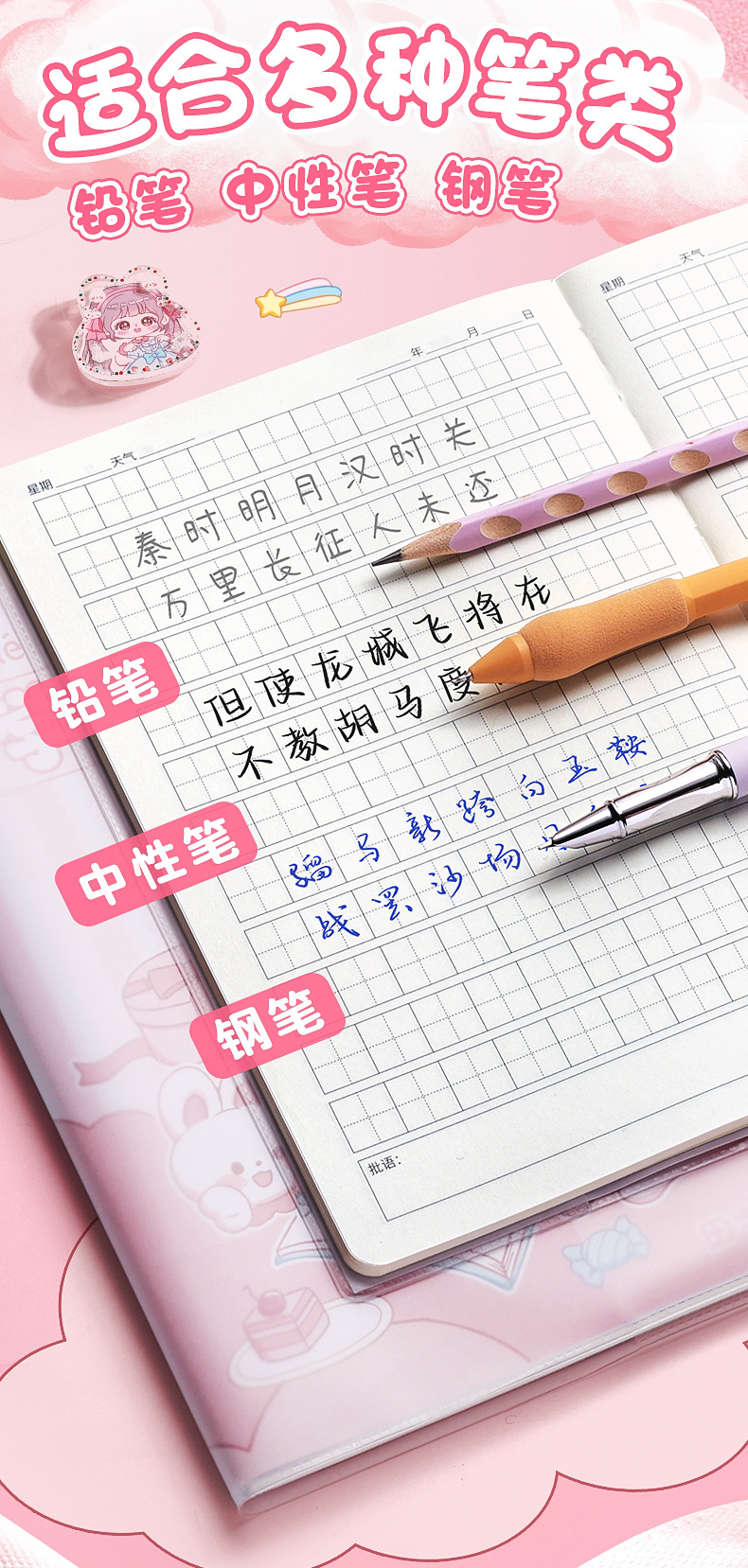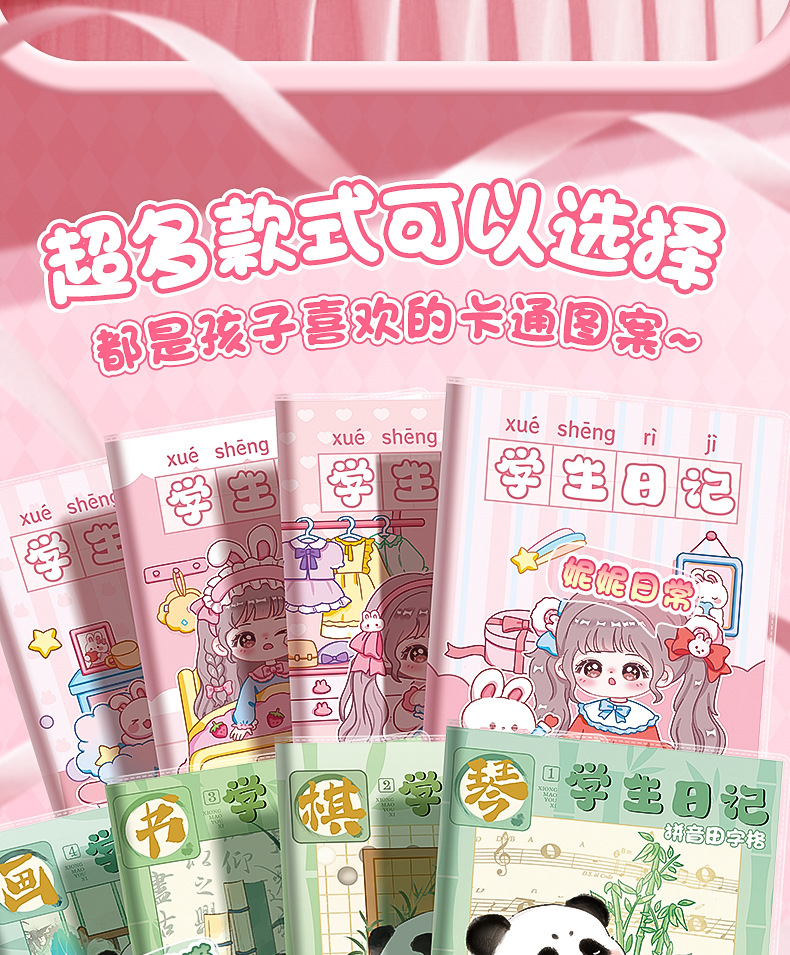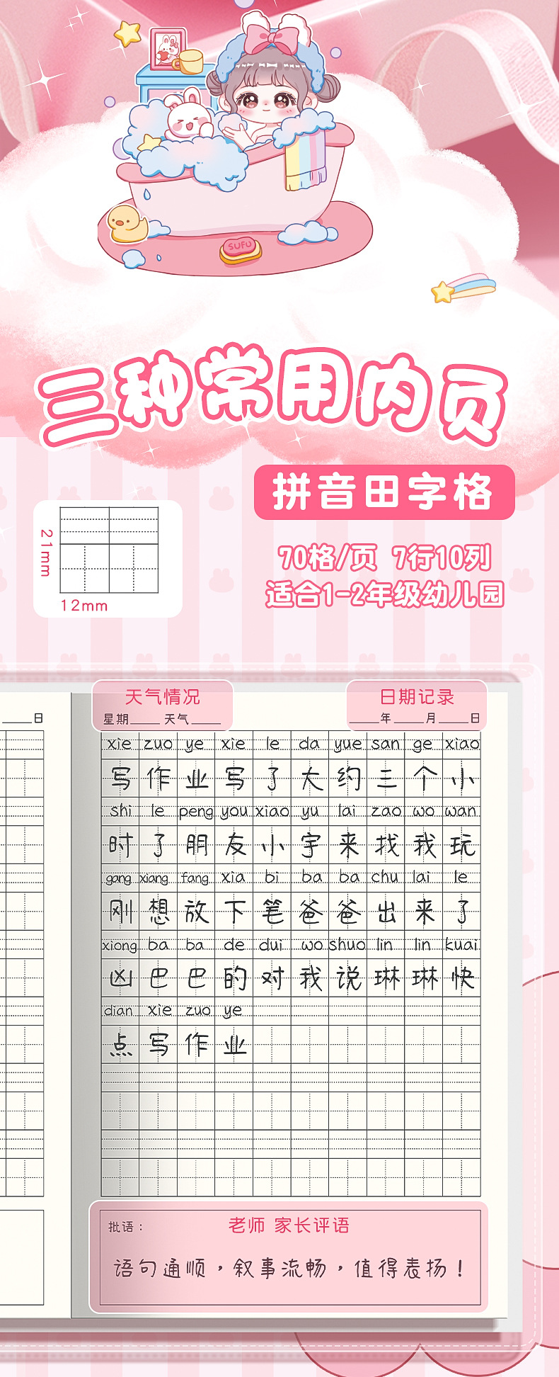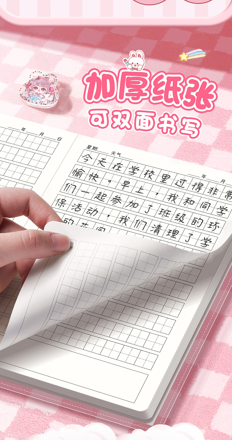 초등학생 만화 고무 소매 운동 책 일기 책 Tian 캐릭터 그리드 병음 사각형 책 a5 두꺼운 눈 보호 양면 쓰기스토어 가기