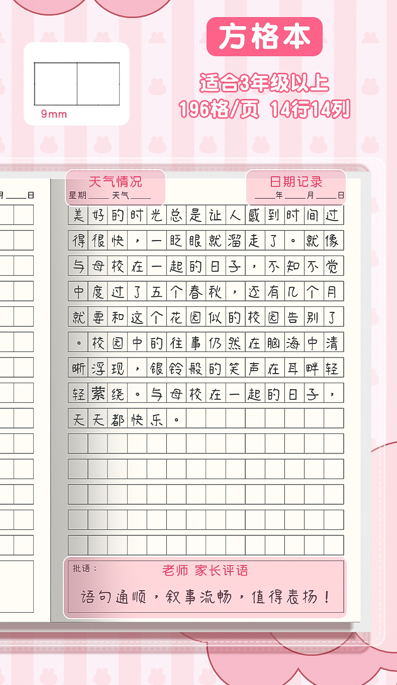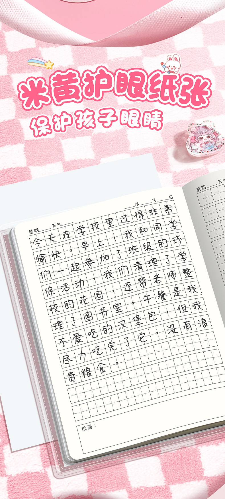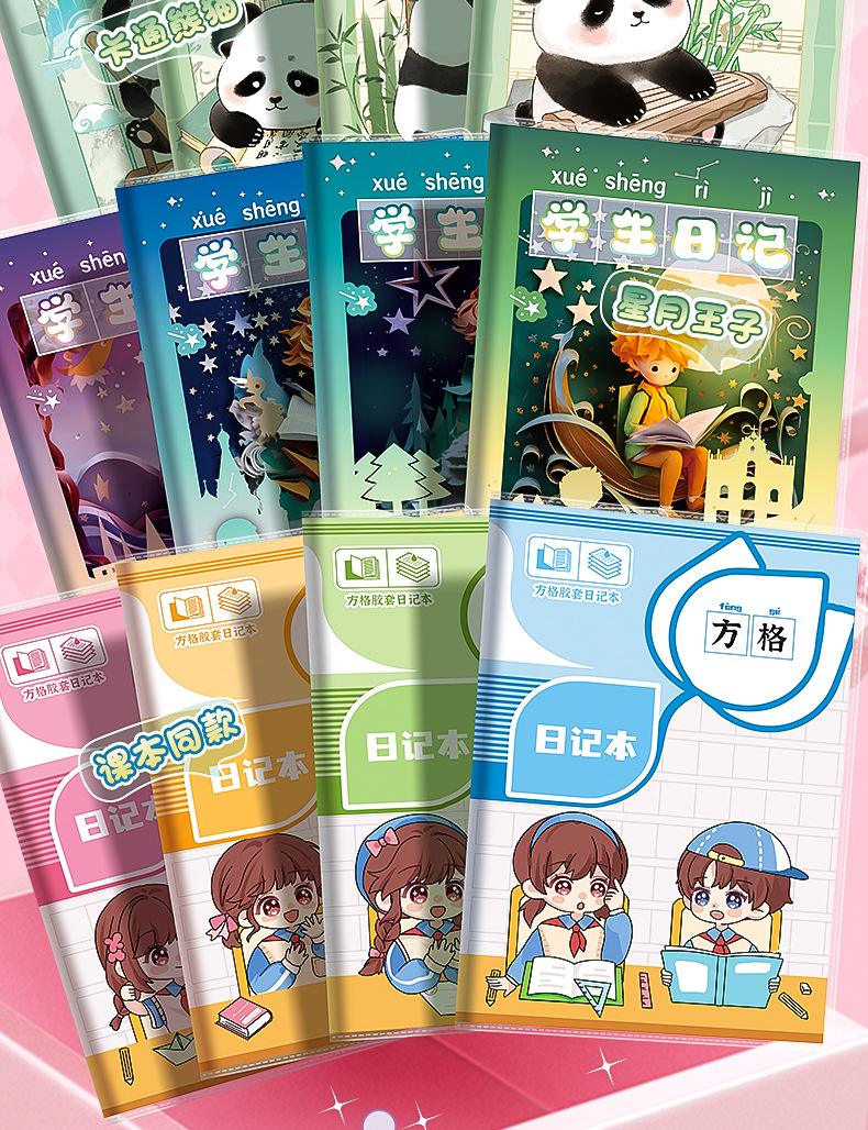 초등학생 만화 고무 소매 운동 책 일기 책 Tian 캐릭터 그리드 병음 사각형 책 a5 두꺼운 눈 보호 양면 쓰기