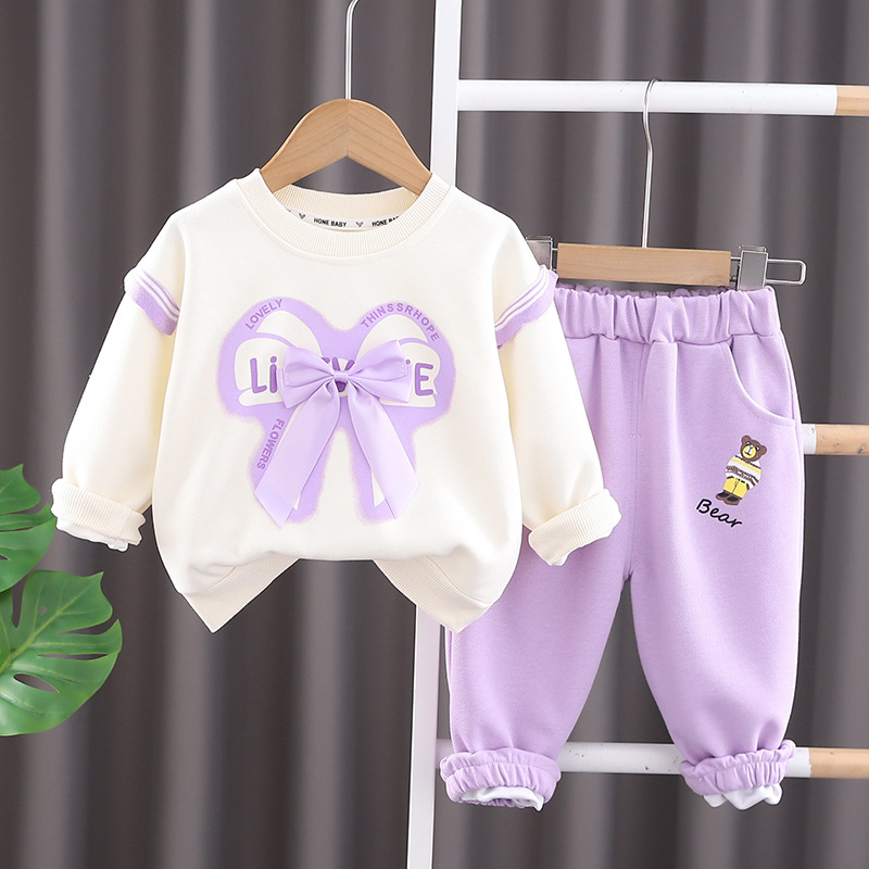 어린이 봄과 가을 나비 긴팔 스웨터 아기 세트 소녀의 세련된 서양식 캐주얼 바지 투피스 세트스토어 가기
