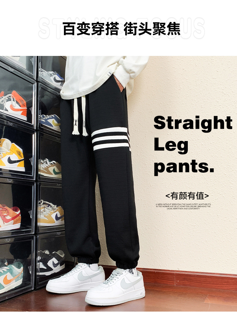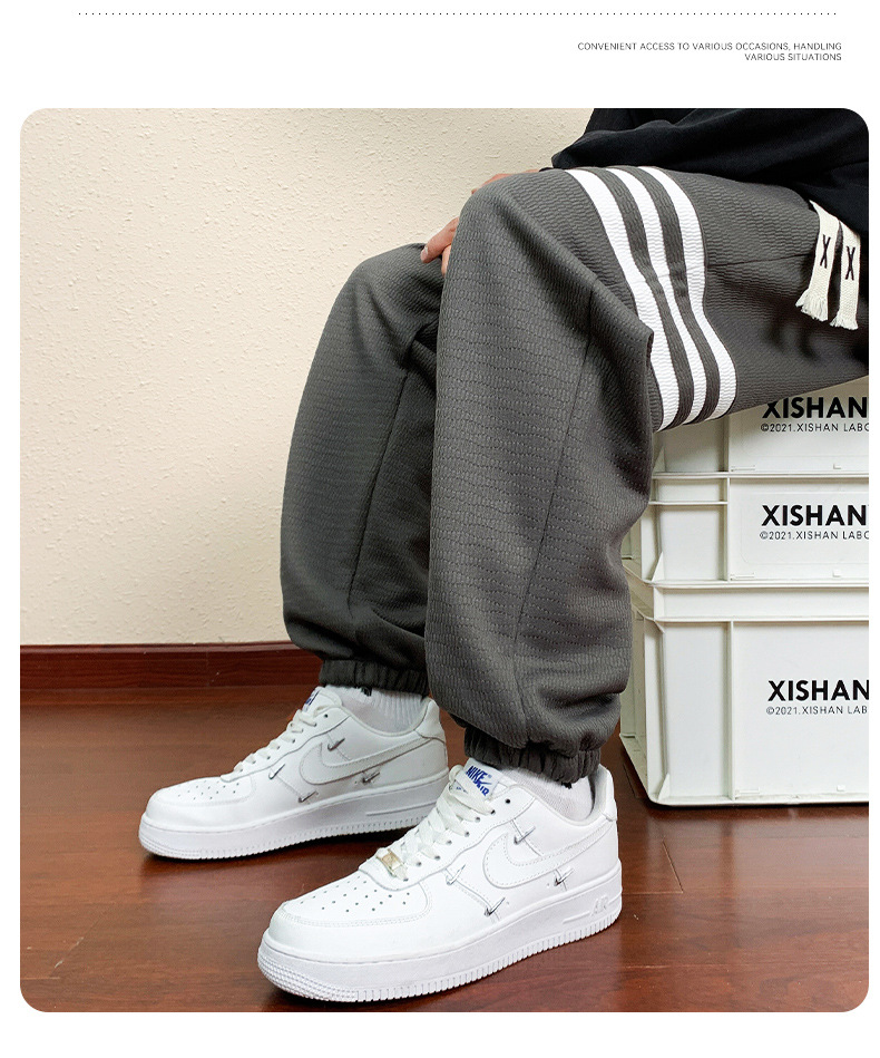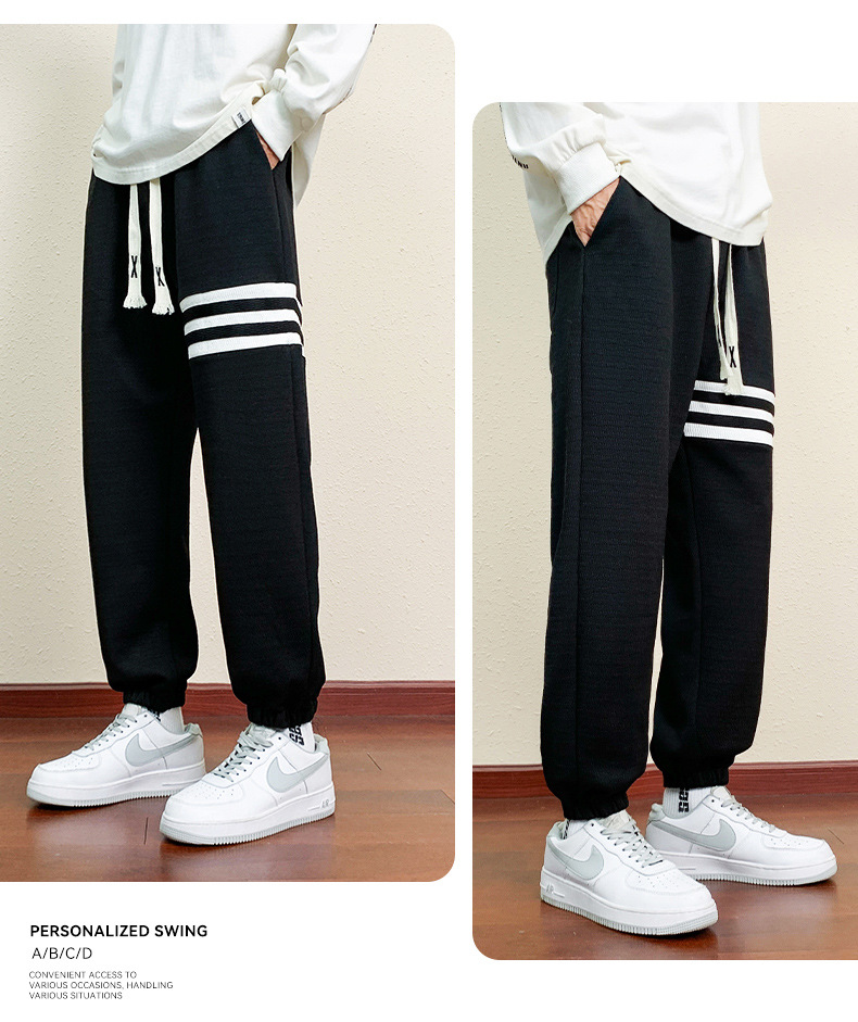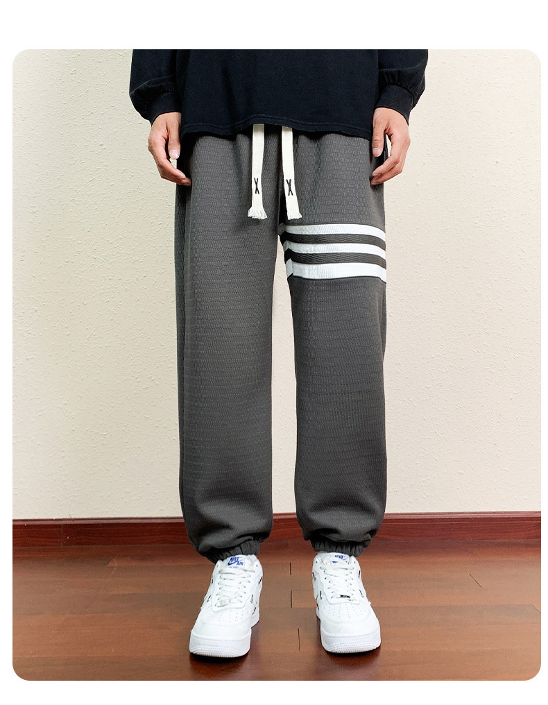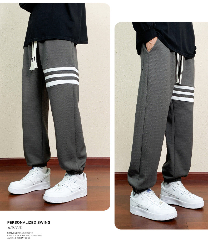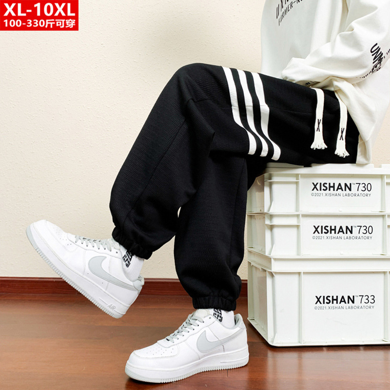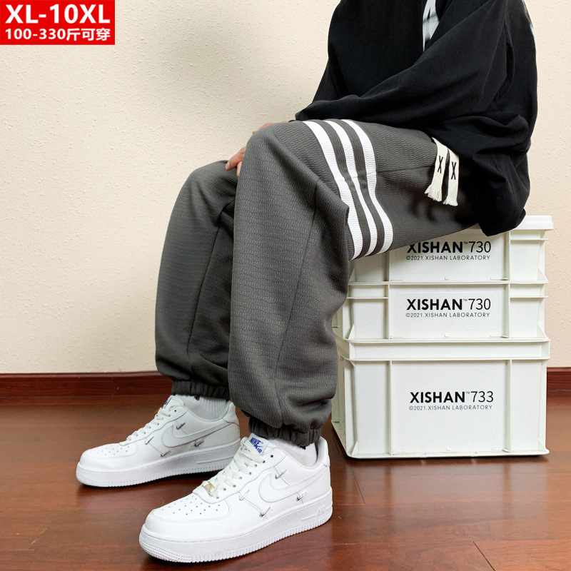봄과 가을의 트렌디 한 남성 프린트 3 바 발목 묶인 니트 스웨트 팬츠 대형 플러스 사이즈 느슨한 스포츠 캐주얼 바지스토어 가기