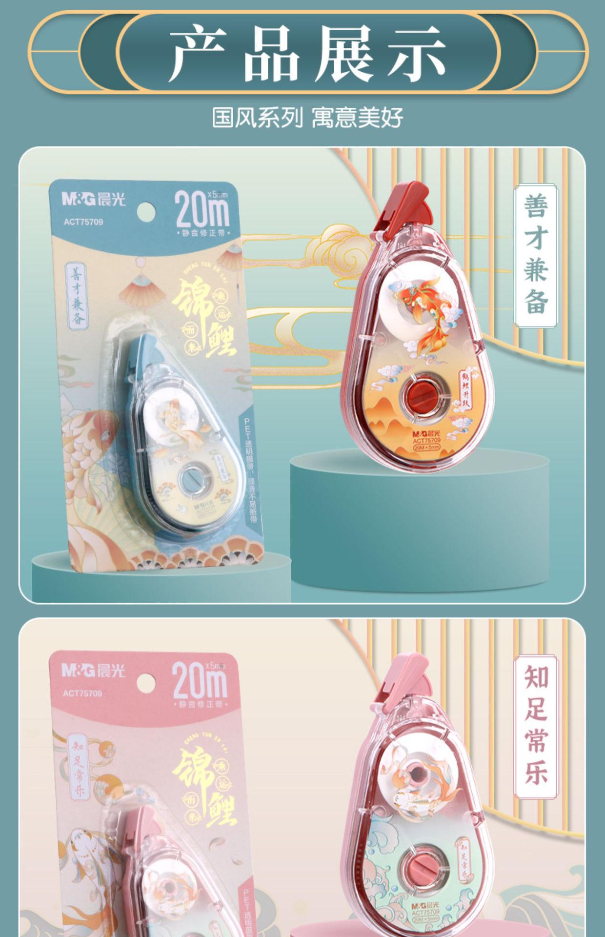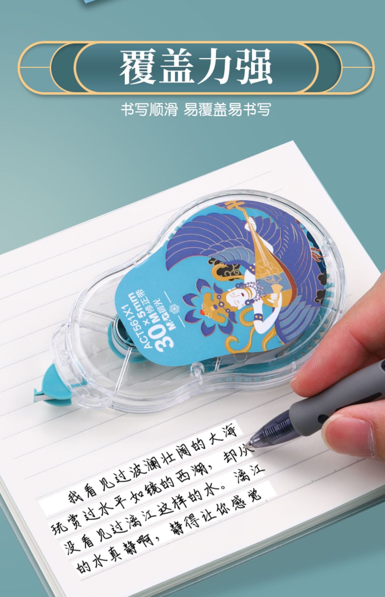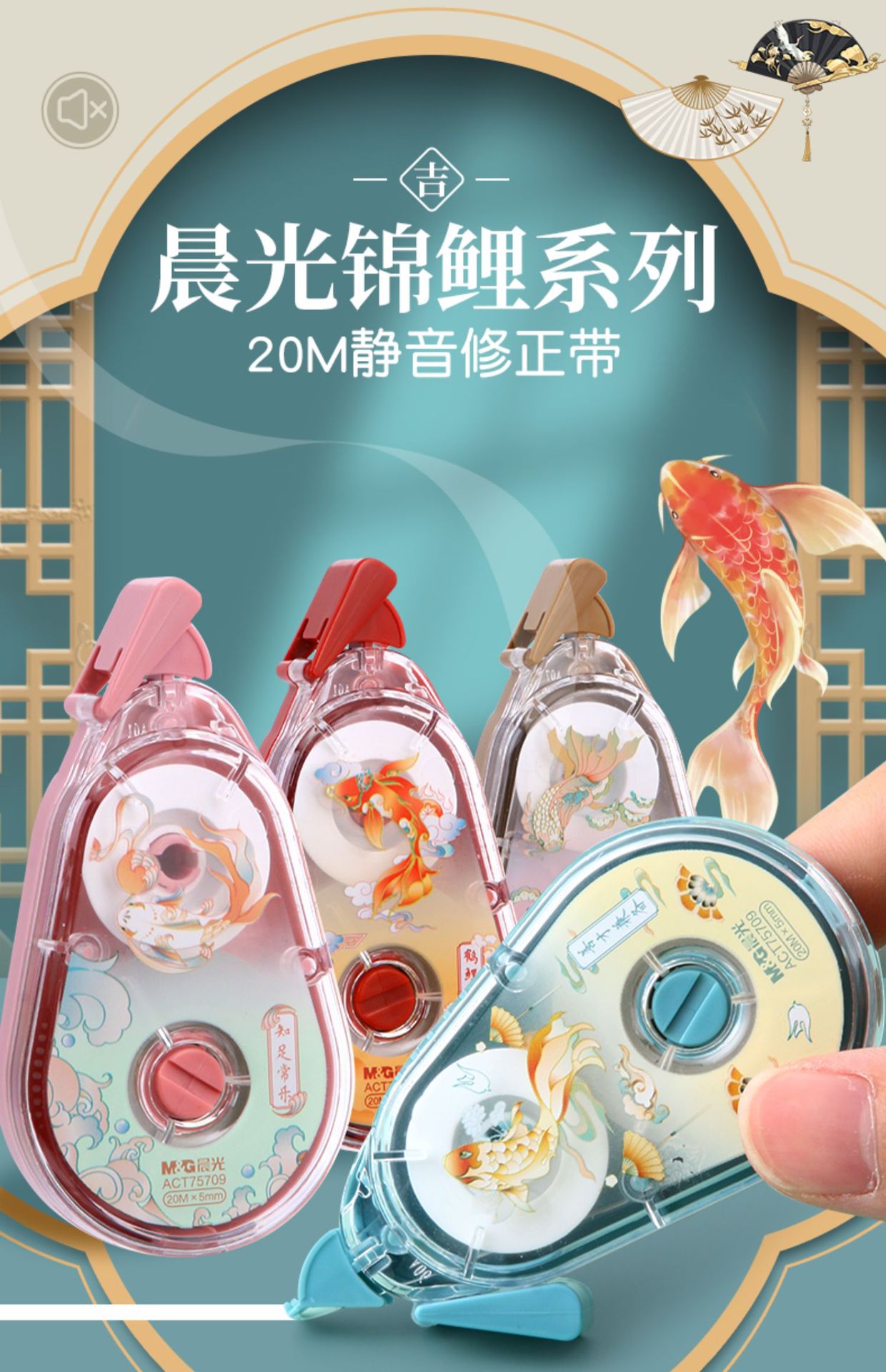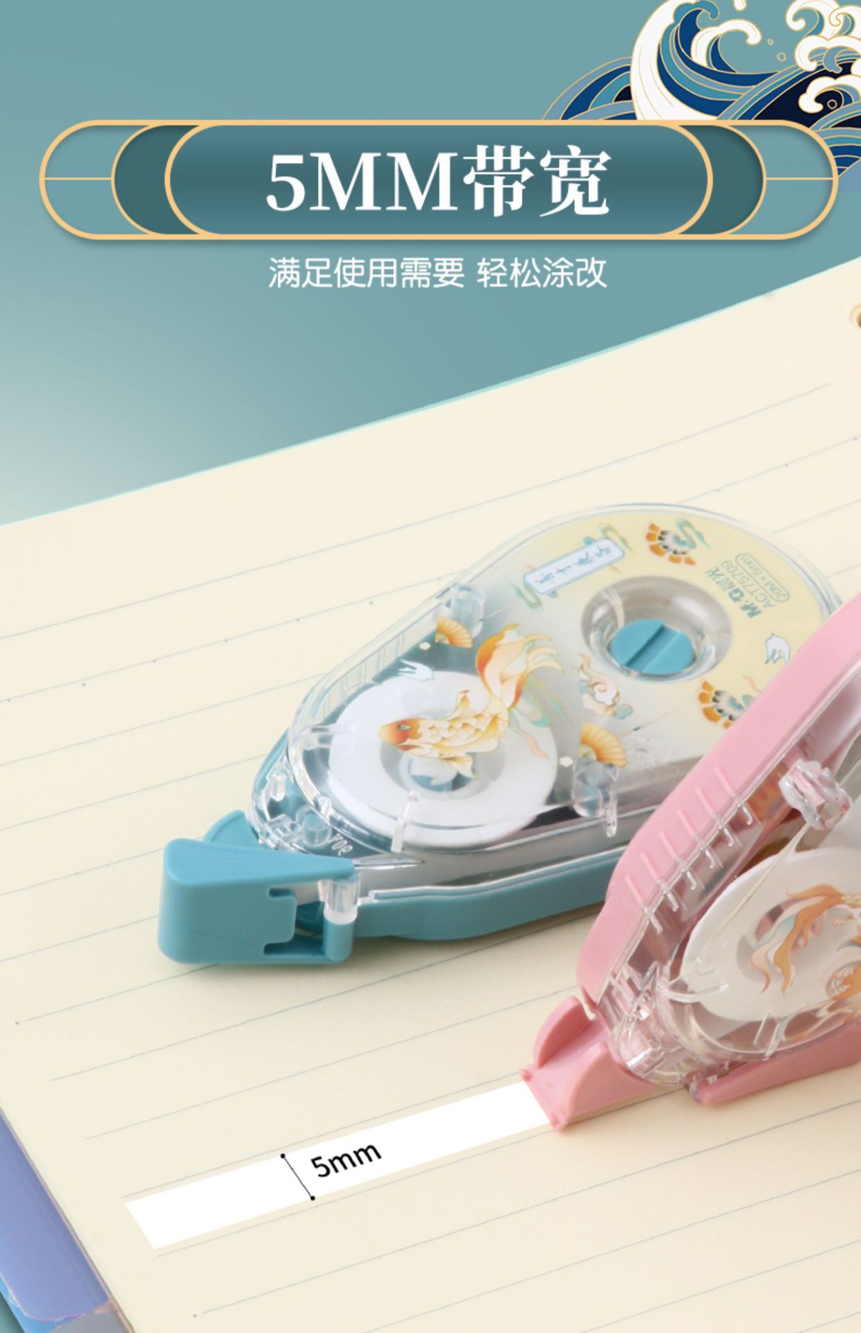 중학생을위한 M & G 잉어 보정 테이프 대용량 보정 테이프 흰색 보정 테이프는 깨지기 쉽지 않은 투명한 음소거