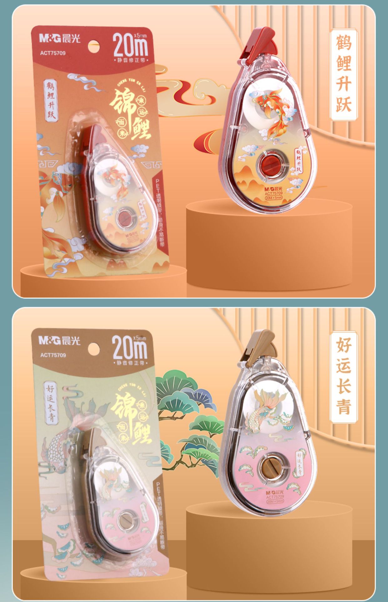 중학생을위한 M & G 잉어 보정 테이프 대용량 보정 테이프 흰색 보정 테이프는 깨지기 쉽지 않은 투명한 음소거스토어 가기