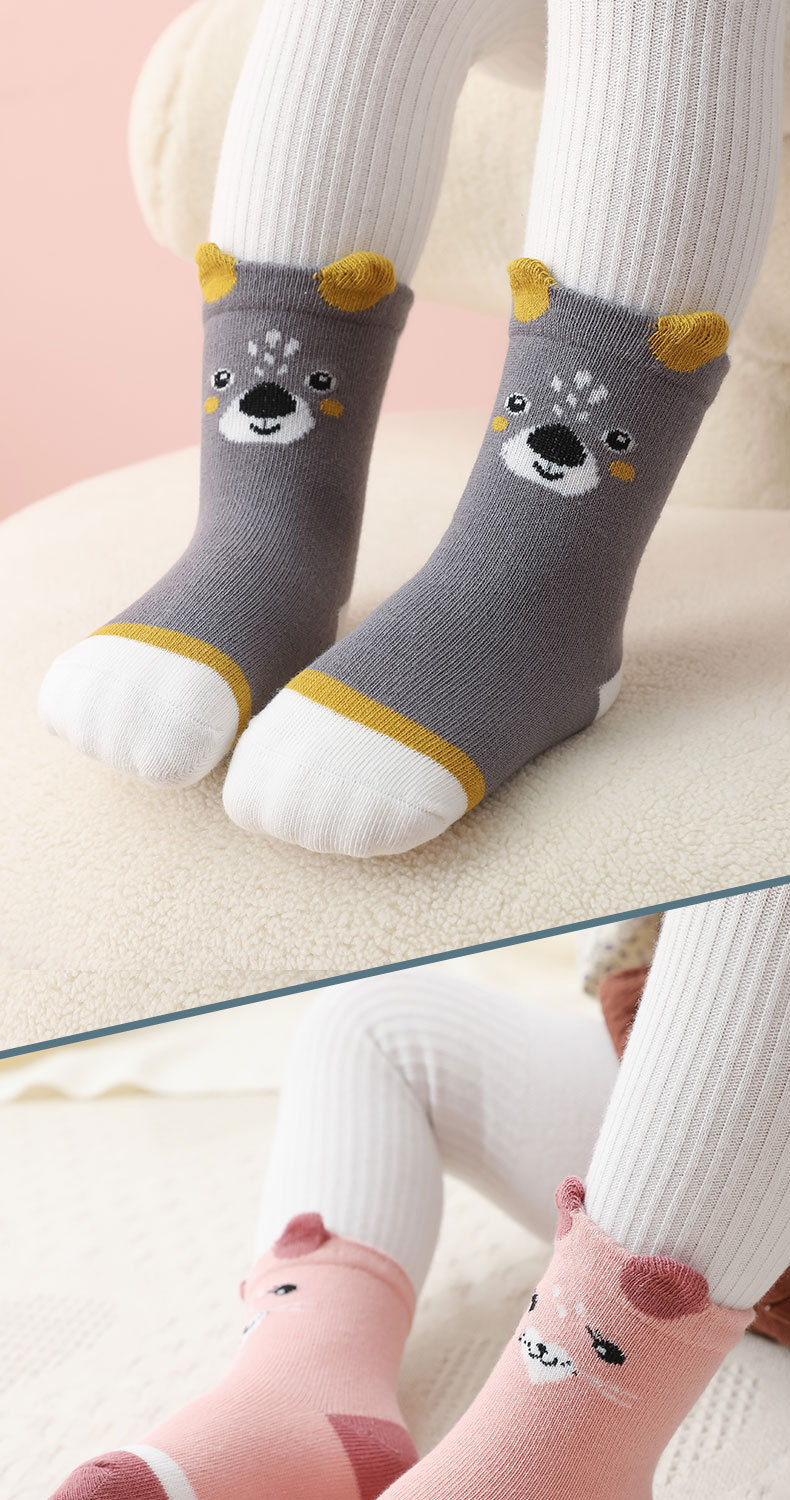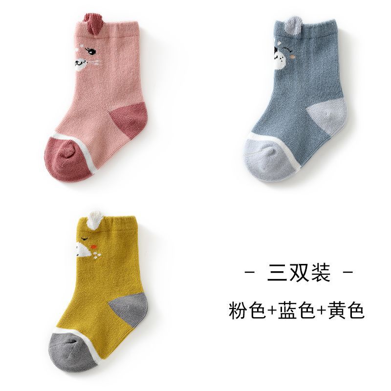 3 쌍의 아기 양말 봄과 가을 신생아 양말면 긴 튜브 0-3 개월 남성 귀여운 딸 어린이 양말