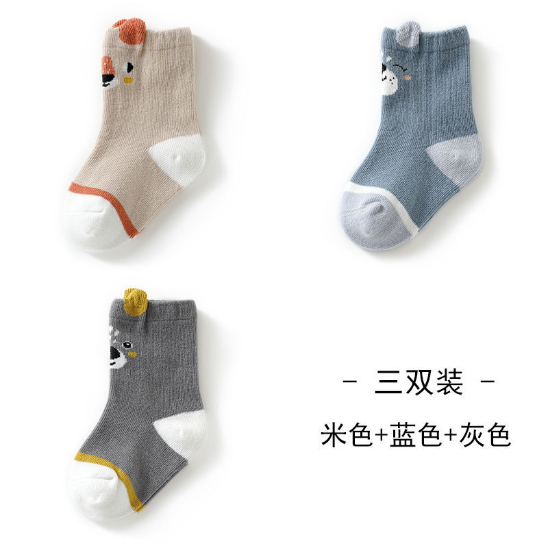 3 쌍의 아기 양말 봄과 가을 신생아 양말면 긴 튜브 0-3 개월 남성 귀여운 딸 어린이 양말스토어 가기