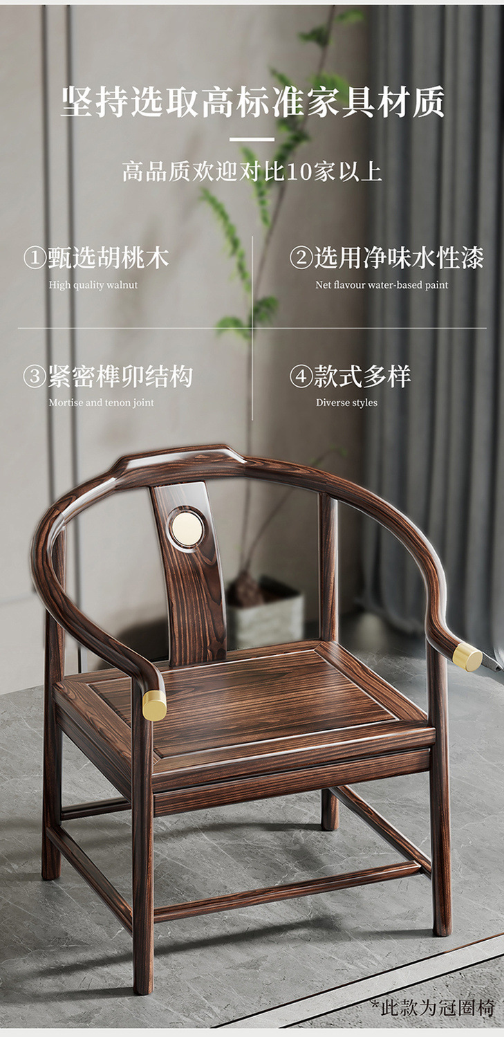 38 마스터 의자 크라운 원형 의자 단단한 나무 차 의자 공식 모자 의자 호두 의자 마스터 의자 중국 홈 등받이 의자