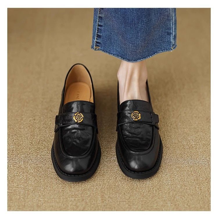 레트로 골드 버클 로퍼 슬립온 2024 봄 신상 프렌치 카멜리아 다용도 영국풍 여성 가죽 신발스토어 가기