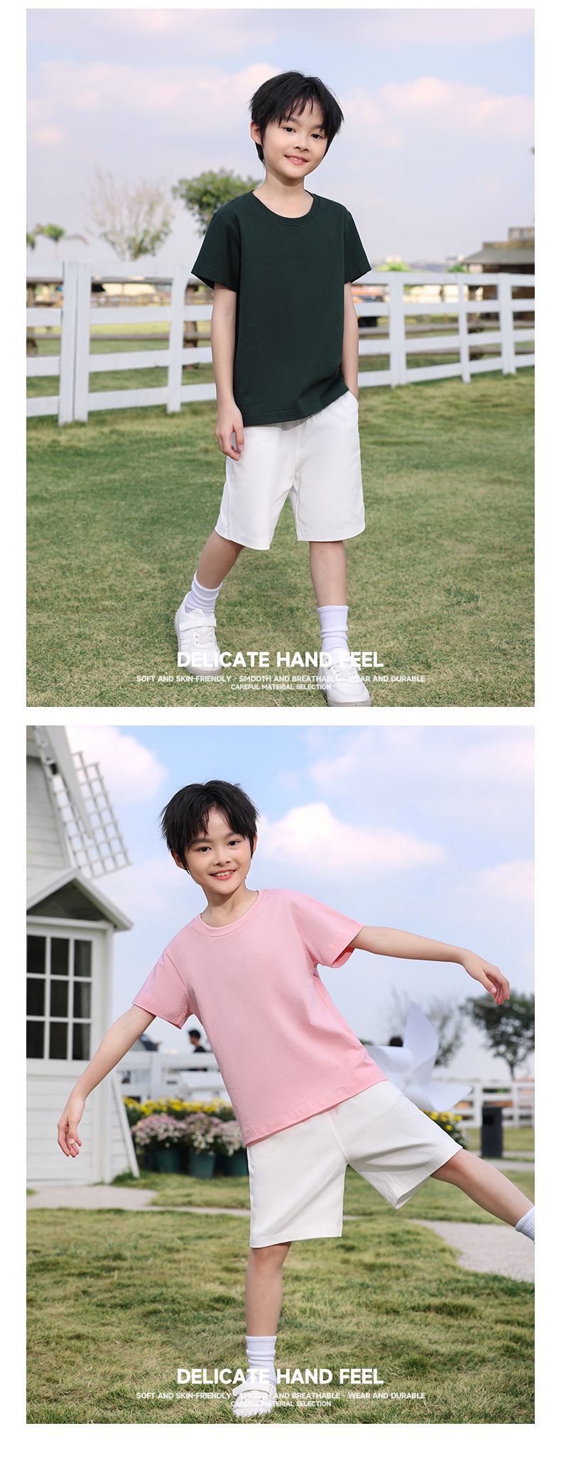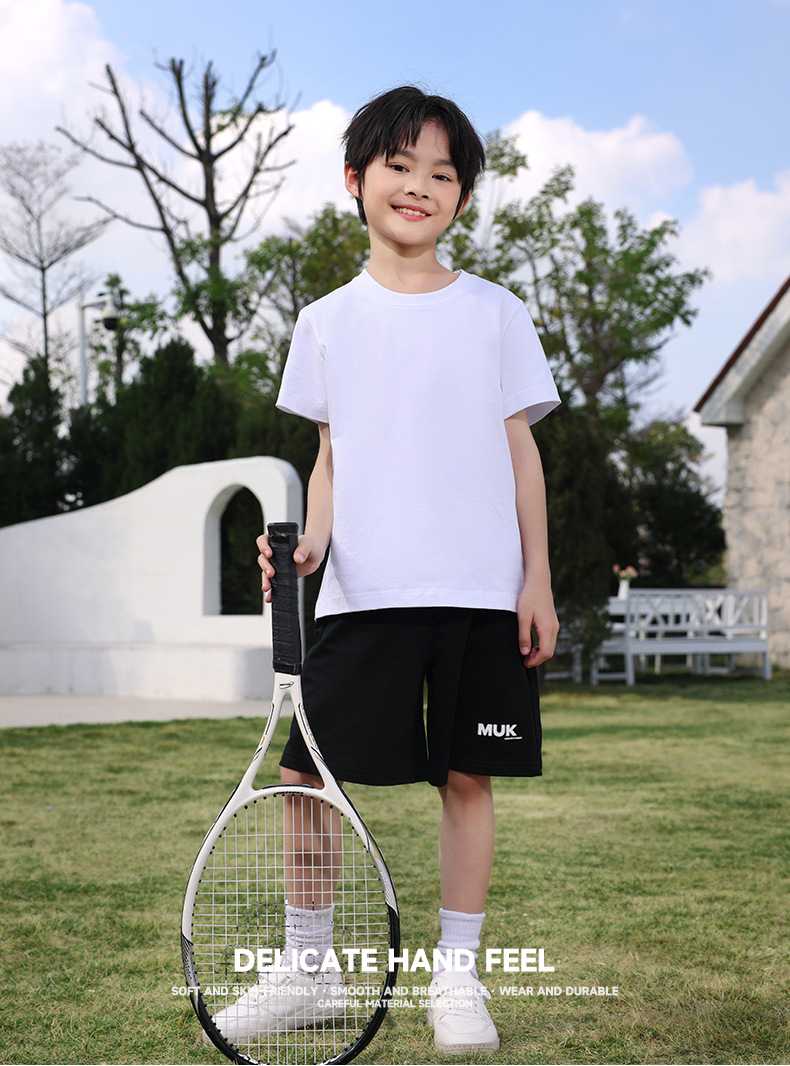 240g 오른쪽 어깨 순면 어린이 티셔츠 맞춤 인쇄 로고 패턴 꽃 단색 그룹 유니폼 클래스 유니폼 부모-자식 착용 무거운