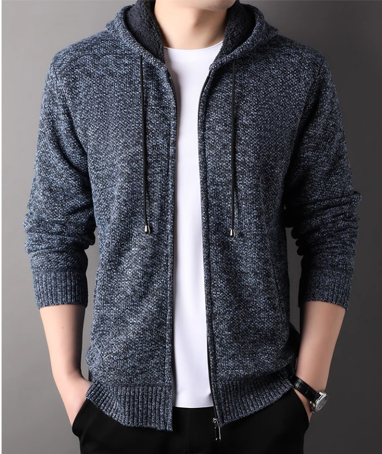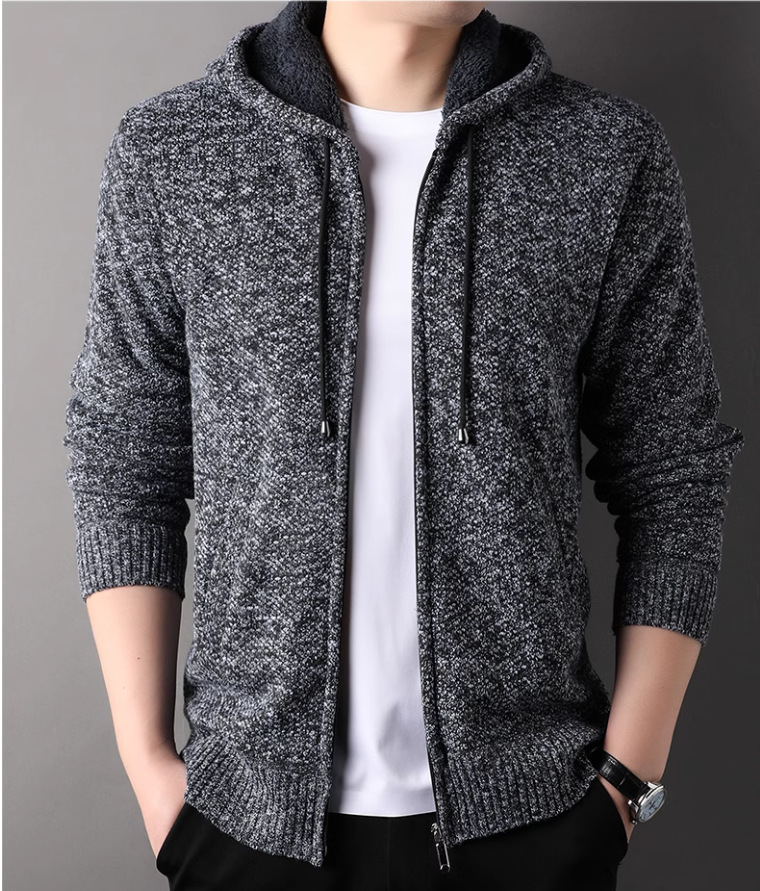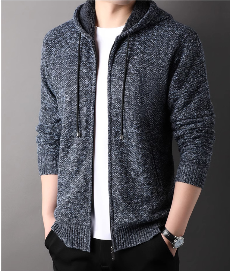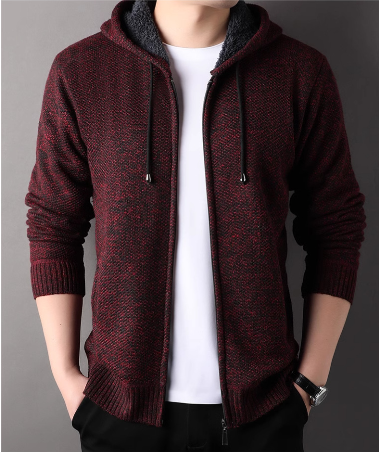 대외 무역 남자 한국식 슬림 핏 기모 두꺼운 스웨터 캐주얼 후드 카디건 스웨터 재킷 남성용 스웨터 재킷