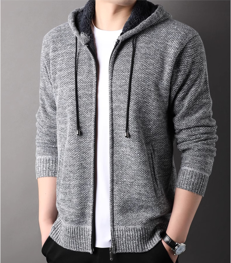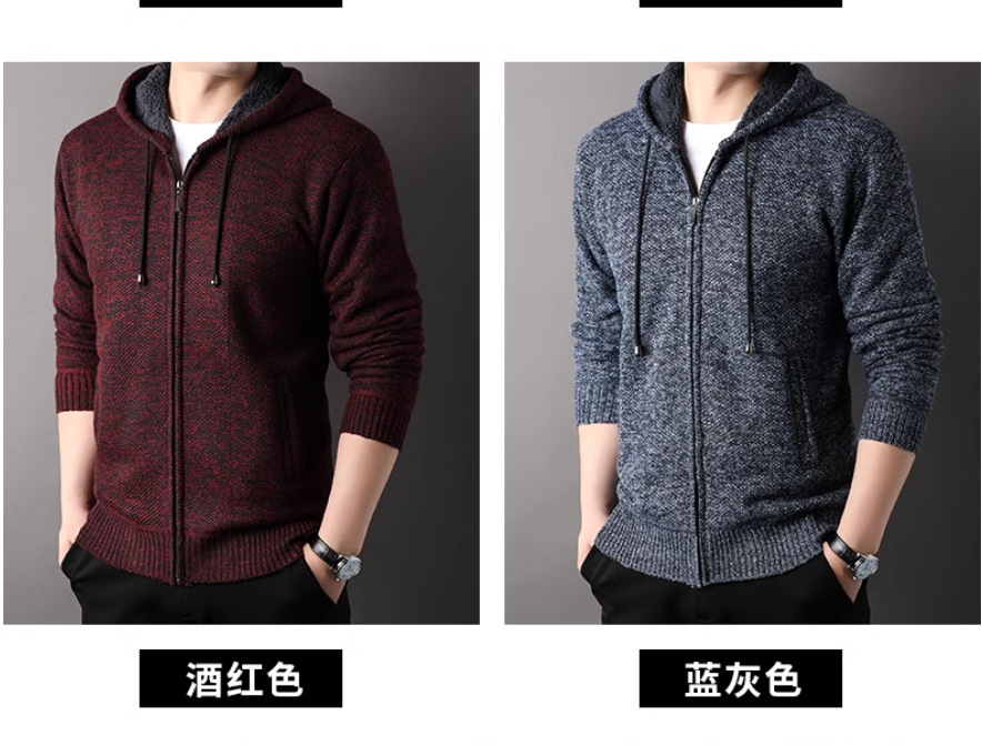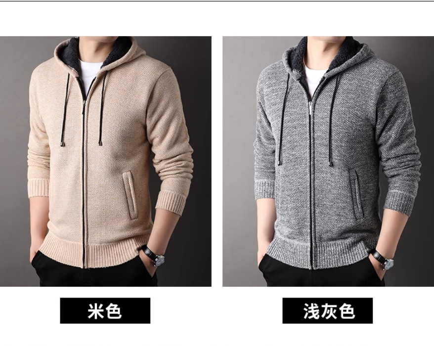 대외 무역 남자 한국식 슬림 핏 기모 두꺼운 스웨터 캐주얼 후드 카디건 스웨터 재킷 남성용 스웨터 재킷스토어 가기