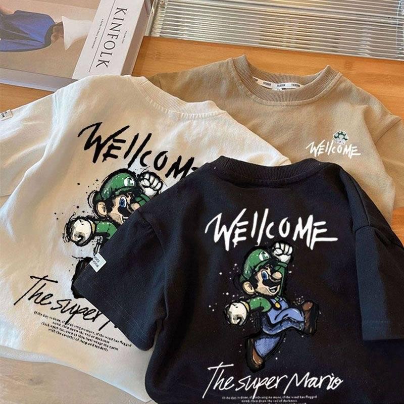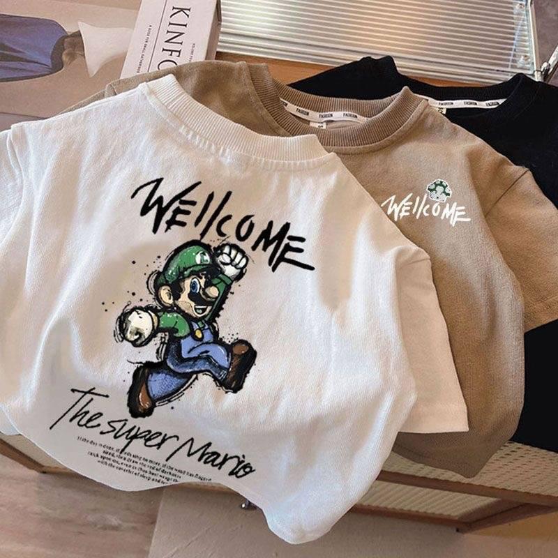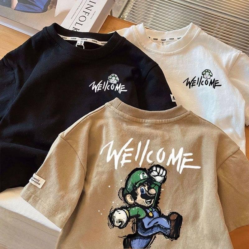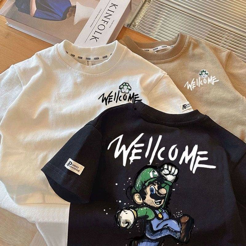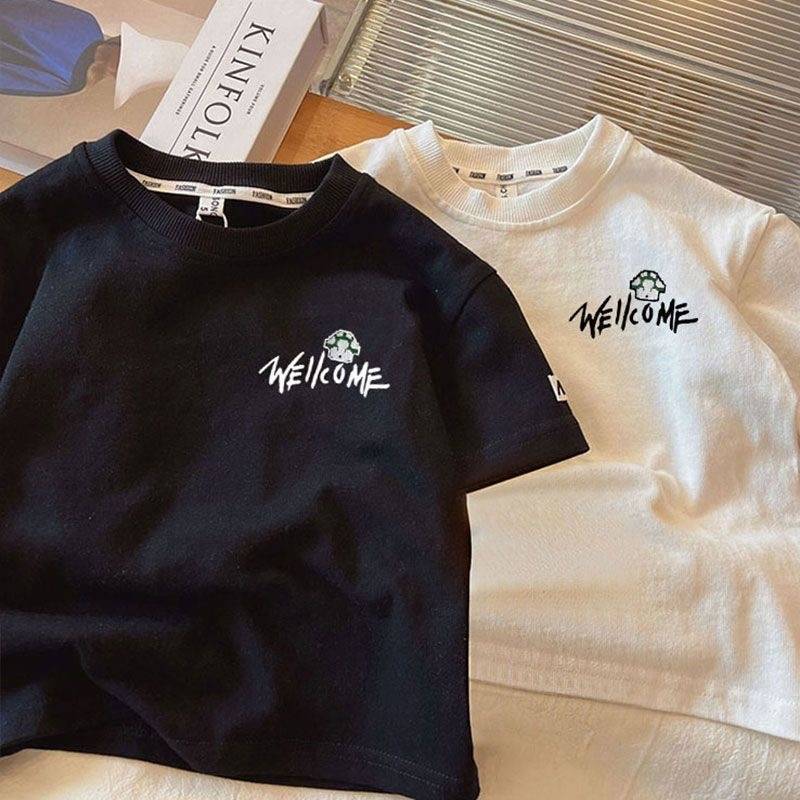 남학생 코튼 반팔 티셔츠 2024 여름 새로운 서양 스타일 올 매치 중소형 아기 소년의 슈퍼 쿨 탑 트렌디 t스토어 가기