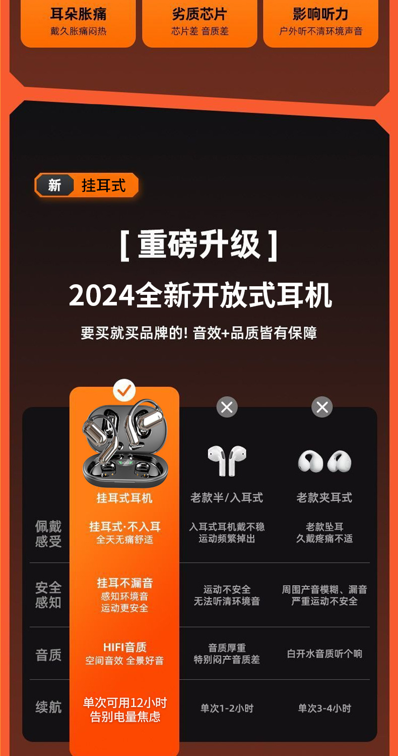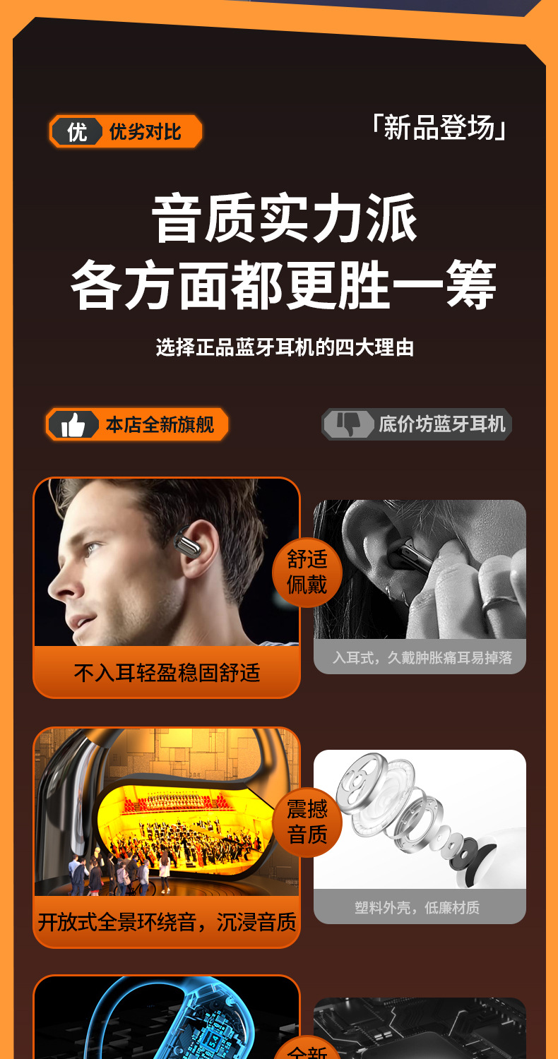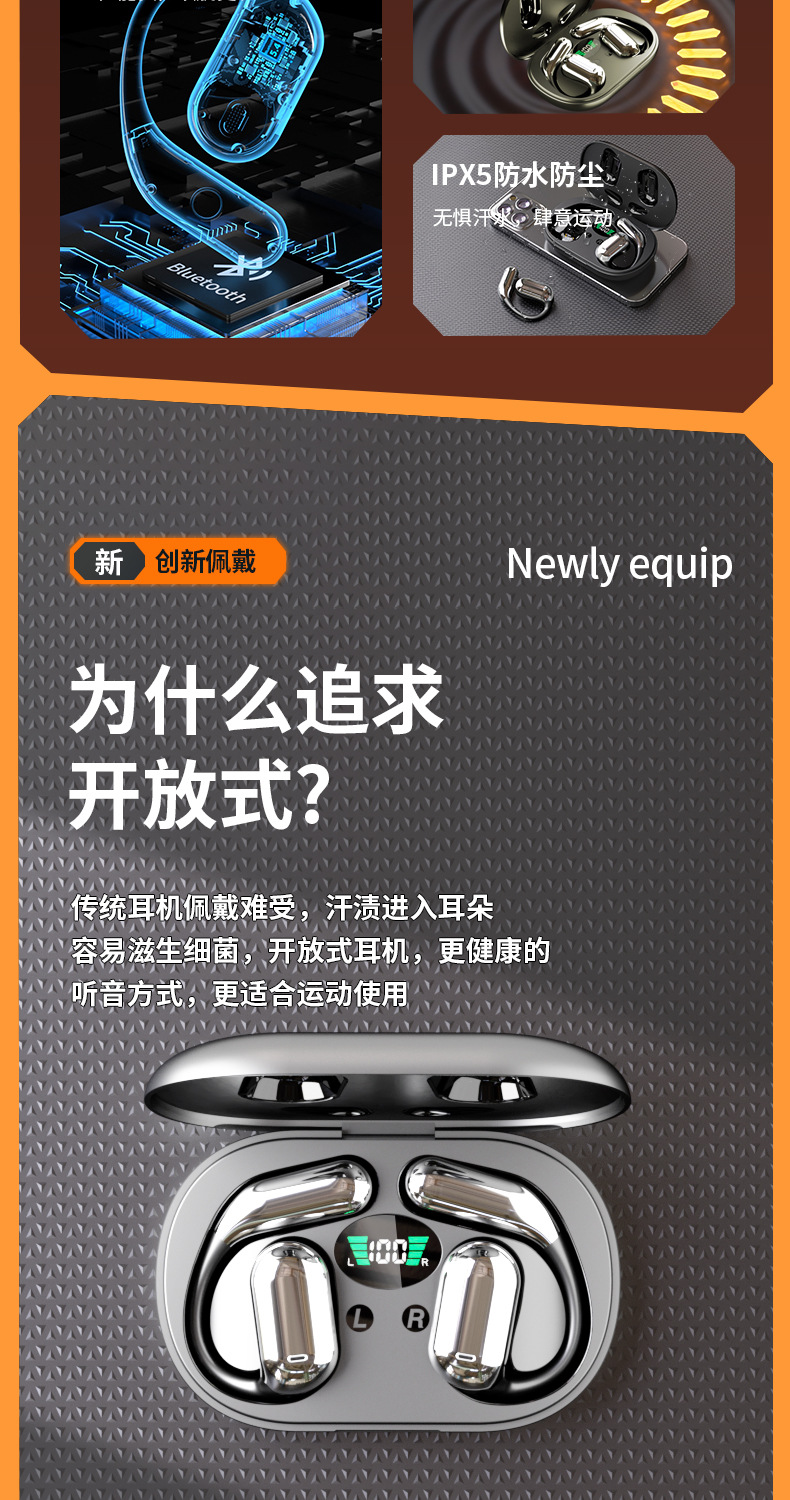 귀에 장착 된 블루투스 헤드셋 OWS 공기 뼈 전도 무선 소음 감소 TikTok 빠른 손을 실행하는 개방형 비 귀 스포츠