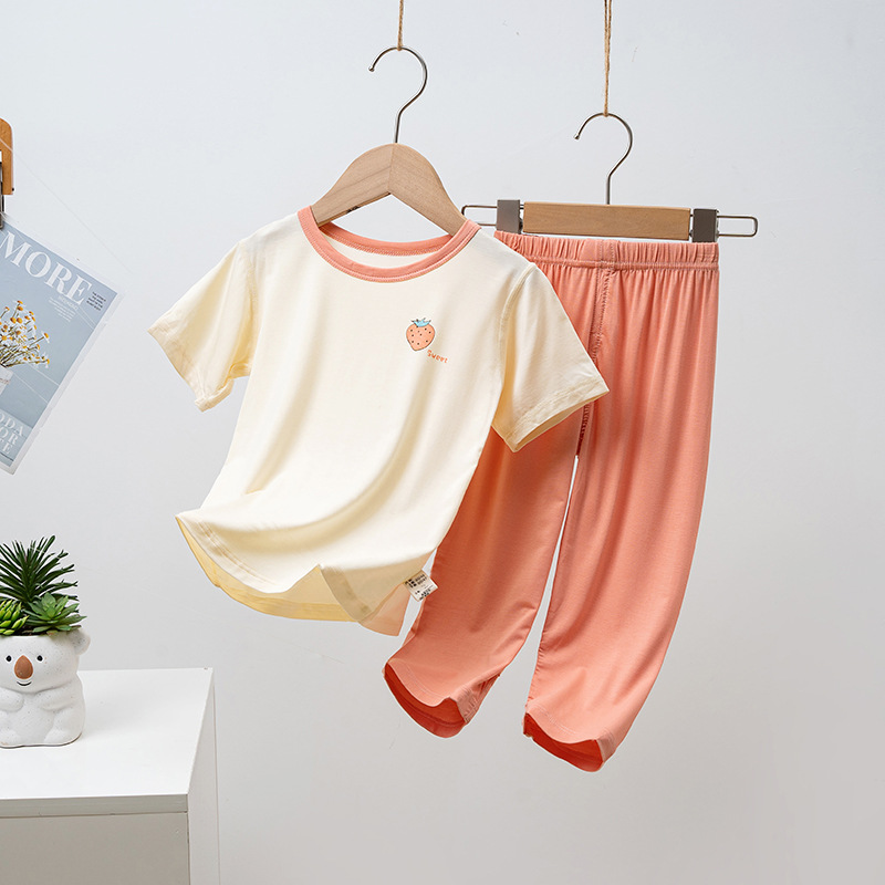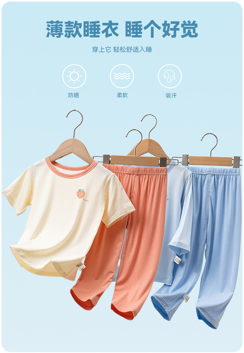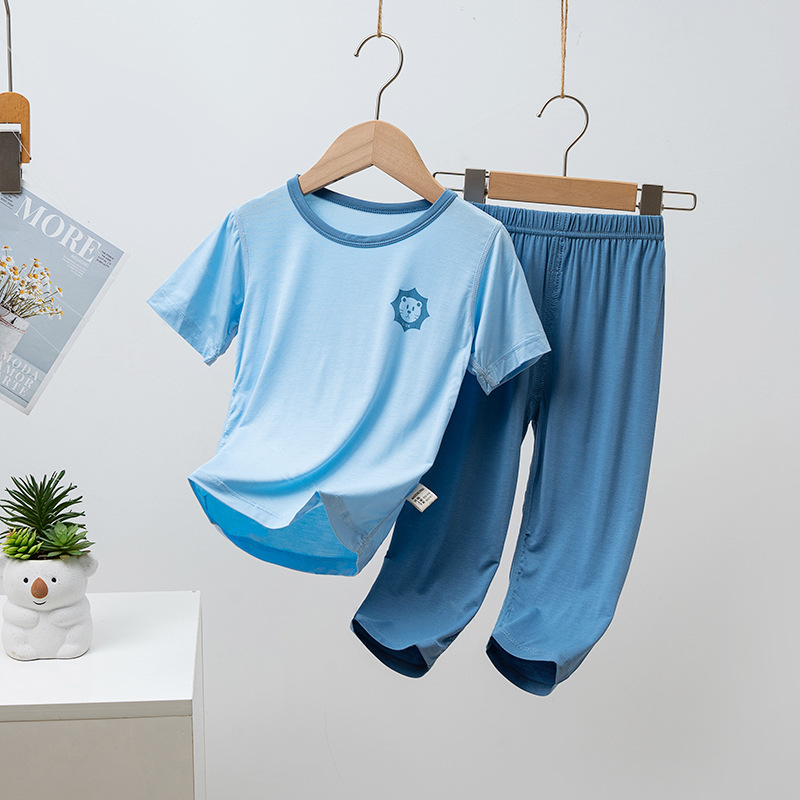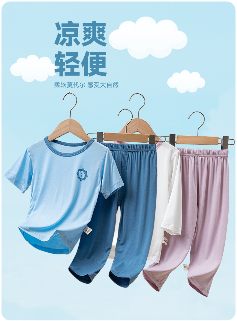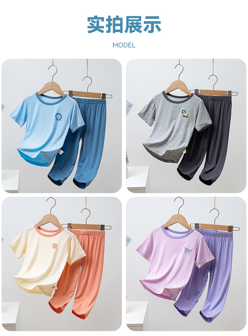 여름 어린이 파자마 모달 소년 홈웨어 반팔 바지 소녀 베이비 미디어와 큰 아이들의 얇은 에어컨 옷스토어 가기