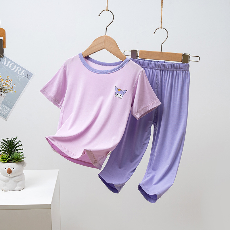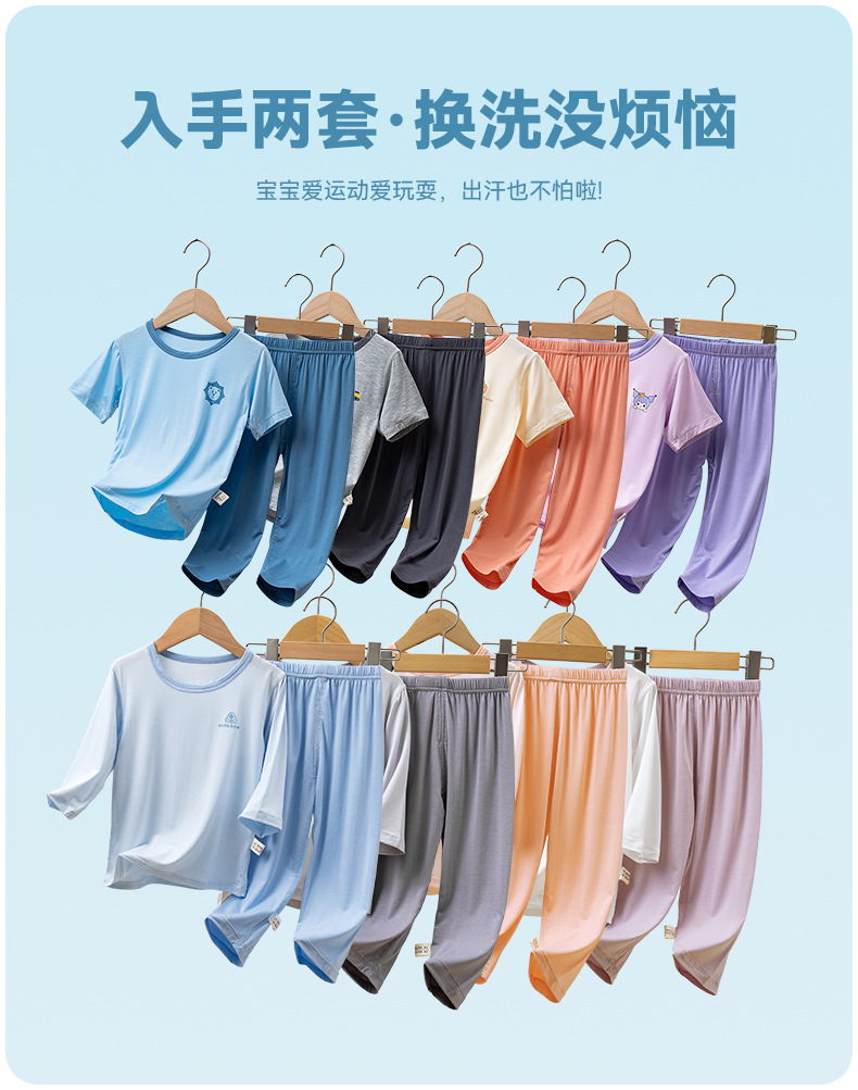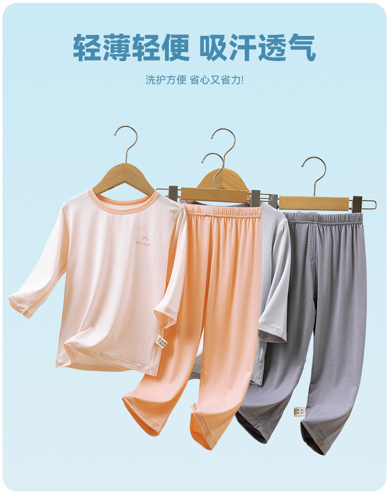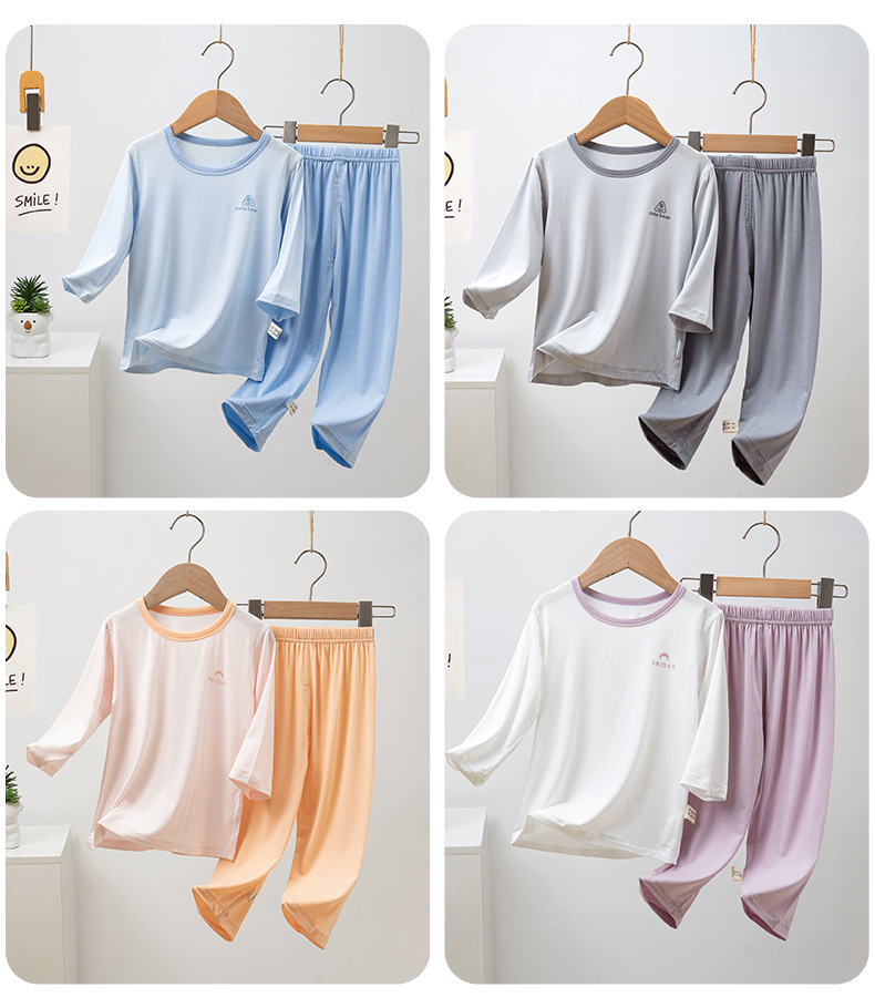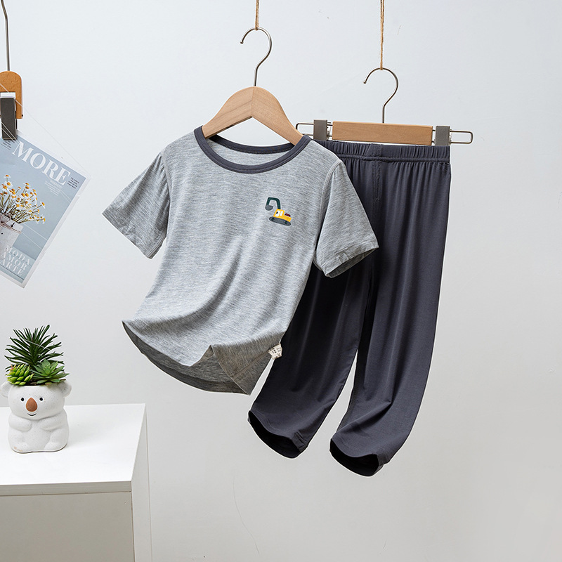 여름 어린이 파자마 모달 소년 홈웨어 반팔 바지 소녀 베이비 미디어와 큰 아이들의 얇은 에어컨 옷스토어 가기
