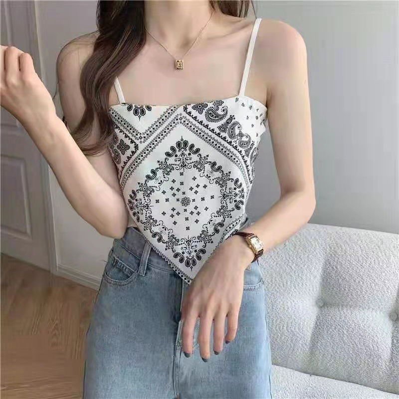 달콤하고 매운 배꼽 주머니 캐슈 꽃 끈 디자인 니트 외부 조끼 여성의 여름 짧은 내부 상단