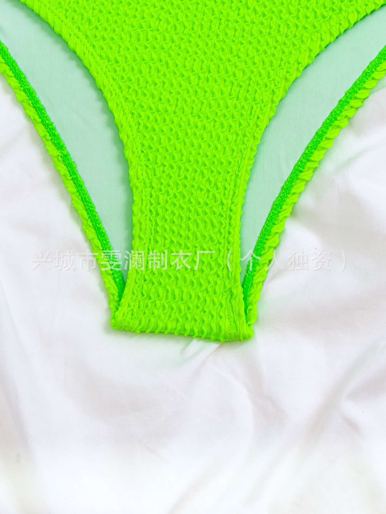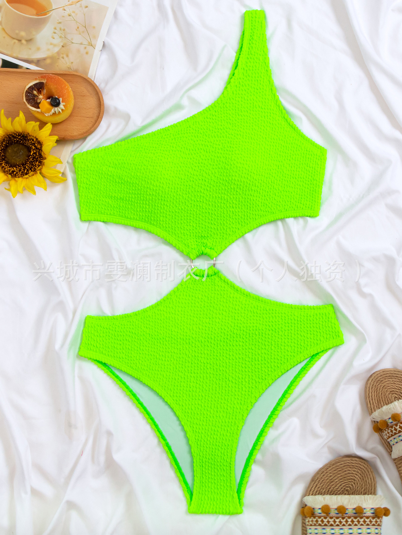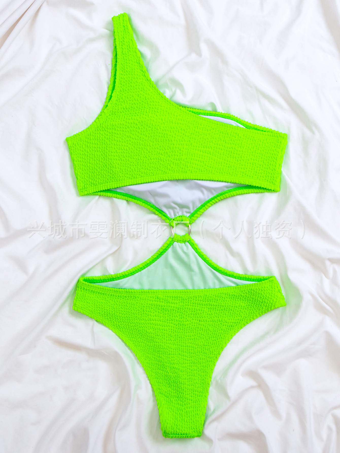 2024 국경 간 여성의 새로운 원피스 수영복 형광 녹색 높은 탄성 슬림 핏 단색 원숄더 유럽과 미국 수영복 도매스토어 가기