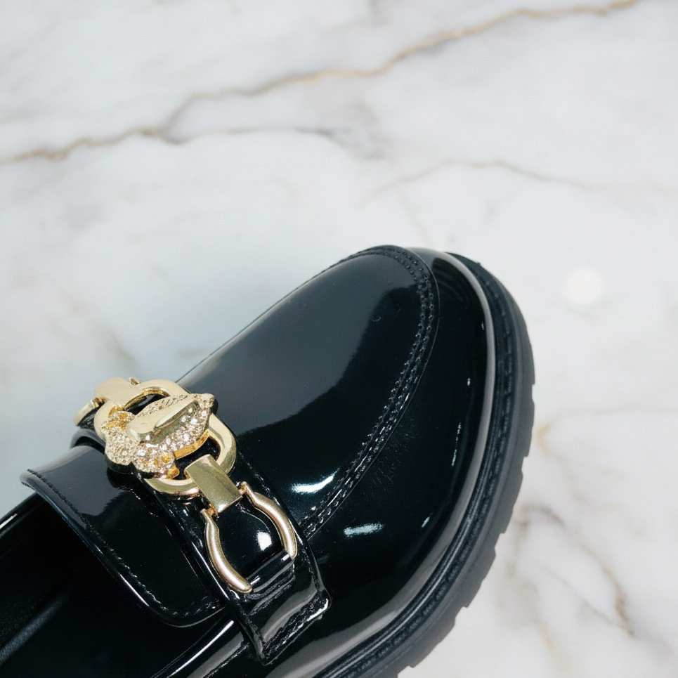 어린이 2026년 신상 캐주얼 가죽 신발 영국 스타일 두꺼운 밑창 로퍼 스타일 다용도 에나멜 금속 버클 신발스토어 가기