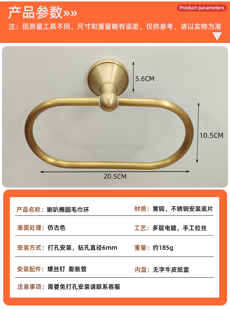 창조적 인 스피커 타원형 수건 반지 새로운 중국 스타일의 구리 욕실 수건 바 복고풍 벽걸이 펜던트스토어 가기