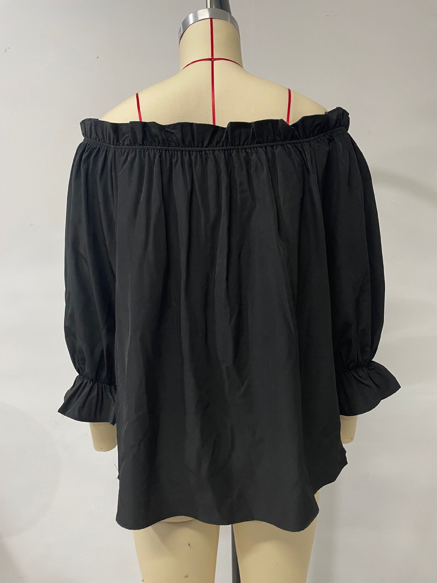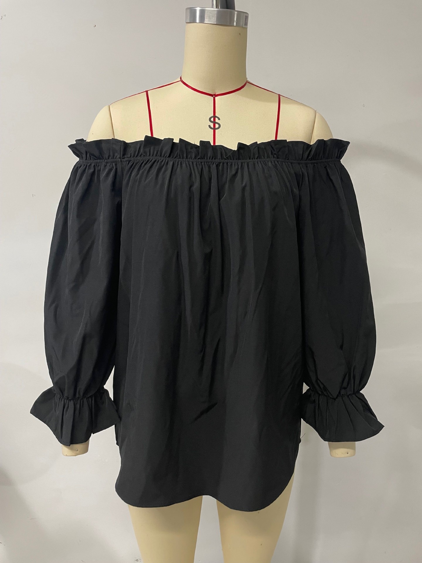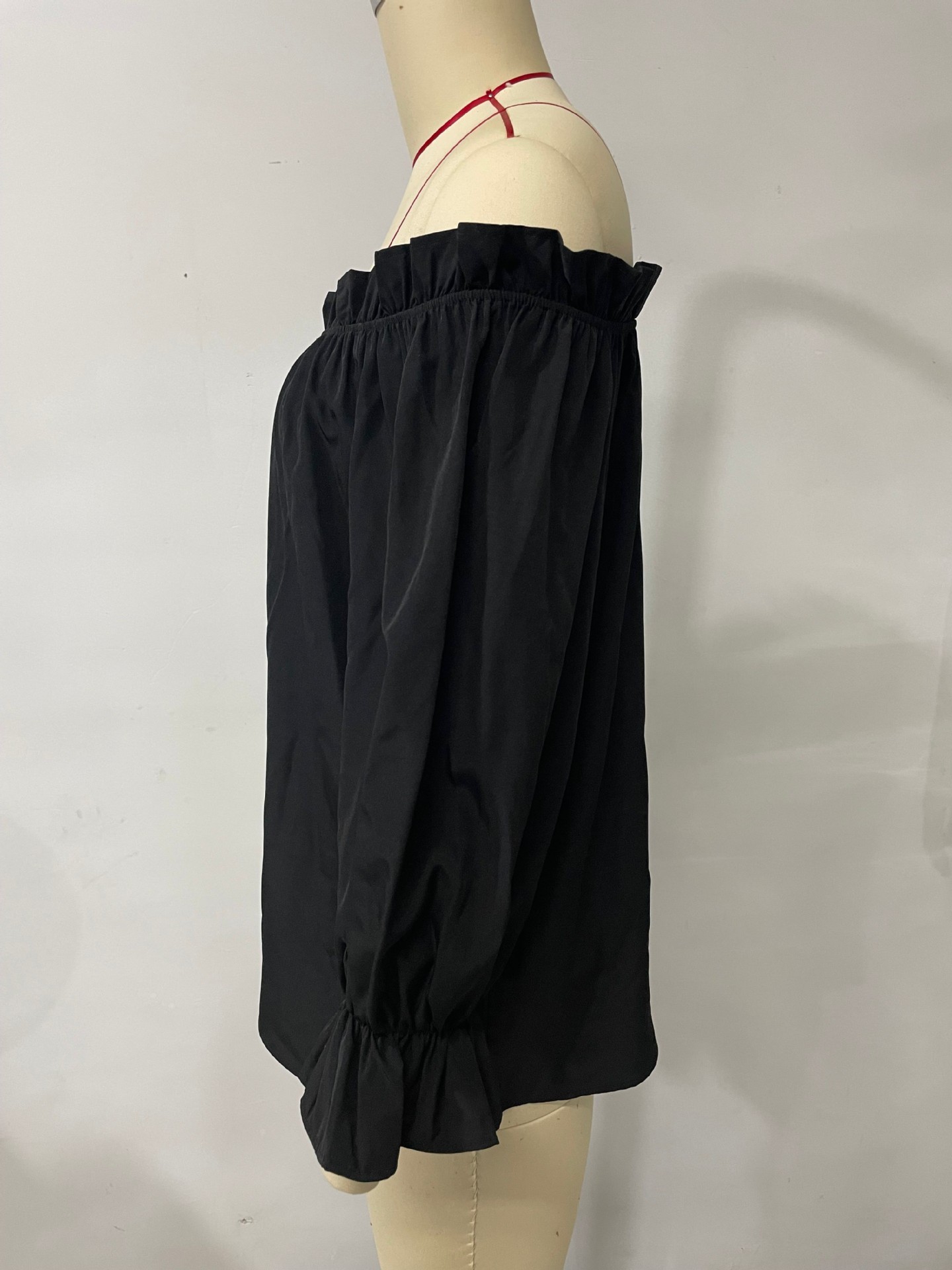 여성을위한 Amazon 국경 간 원 라인 칼라 쉬폰 셔츠 봄, 가을 새로운 유럽과 미국의 솔리드 컬러 풀오버 여성을위한 섹시한 오프 숄더 탑