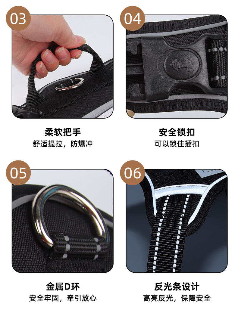 국경 간 애완 동물 가슴 끈 통근 폭발 방지 개 가슴 끈 도매 조끼 반사 개 가죽 끈
