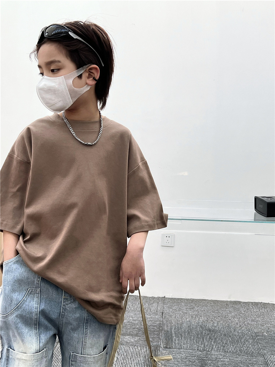 봄 여름 아동용 반팔 230g 액상 수성 부드러운 면 소재 칼라에 작은 글자 남녀공용 단색 기본 반팔