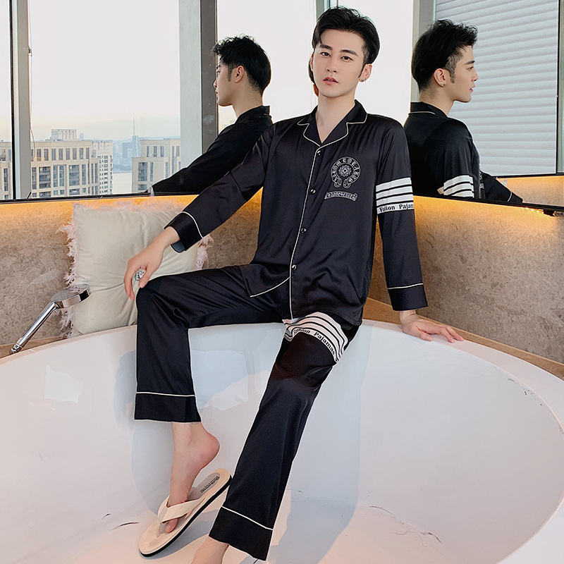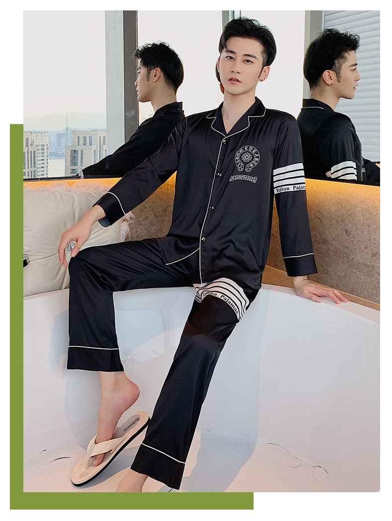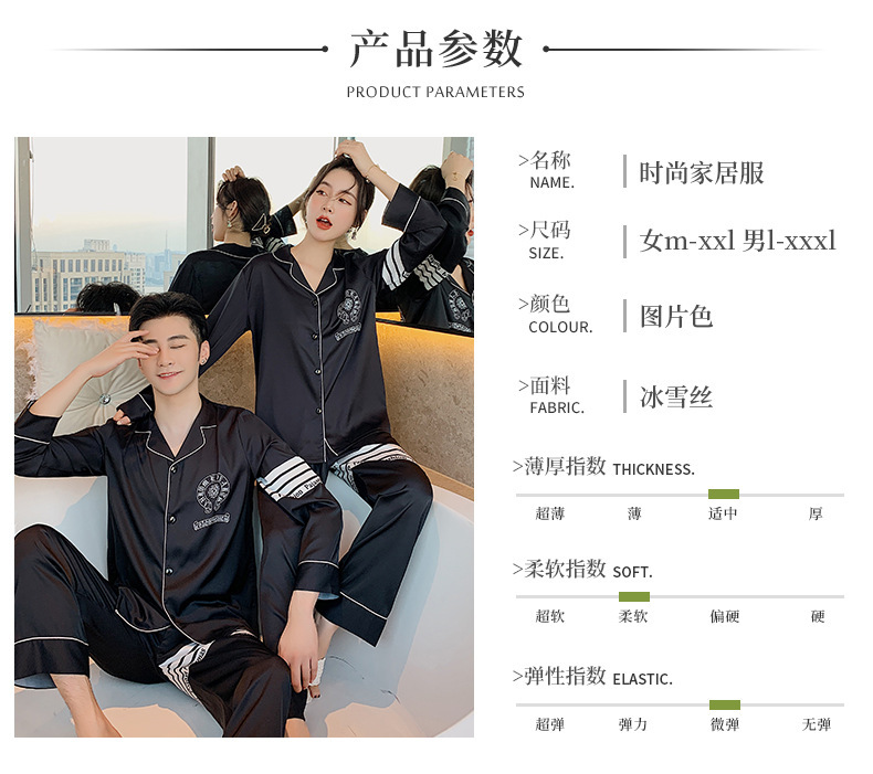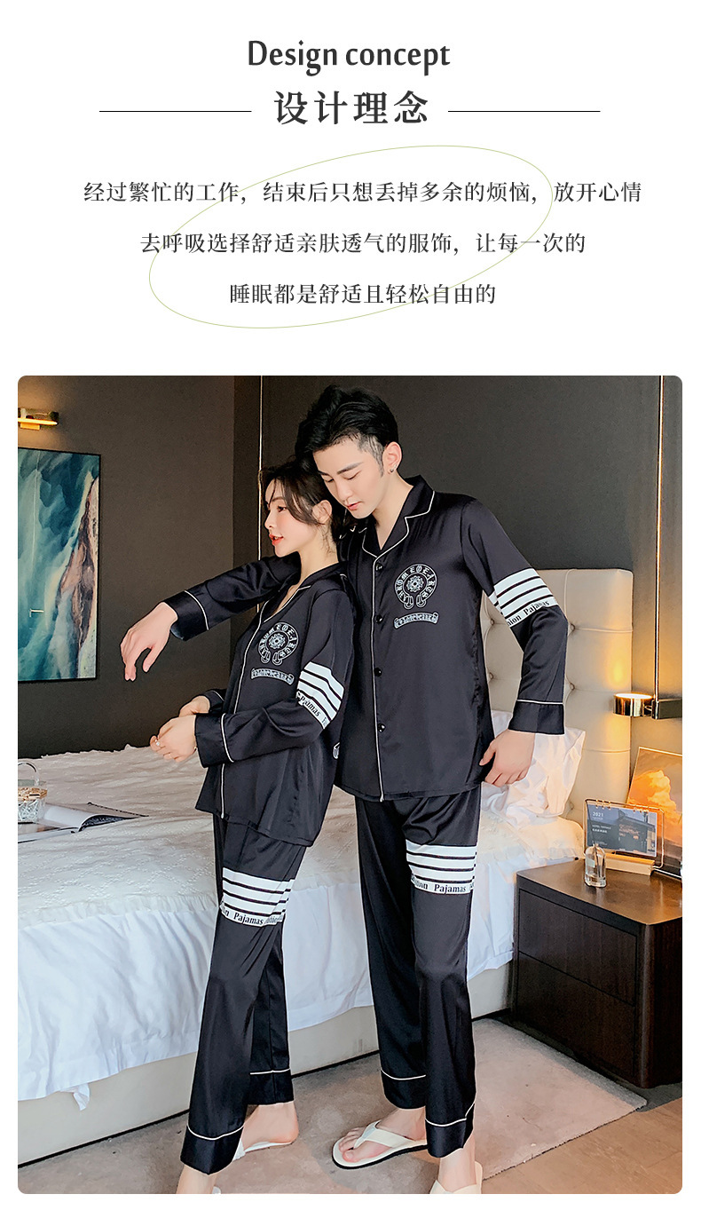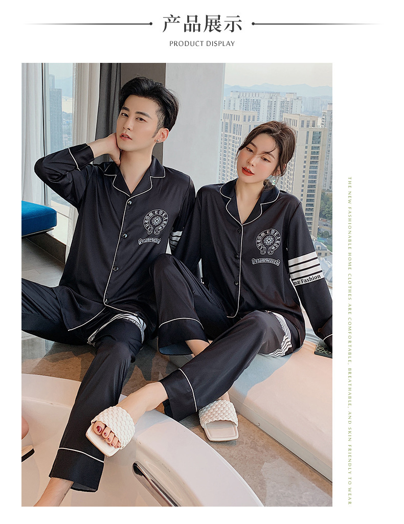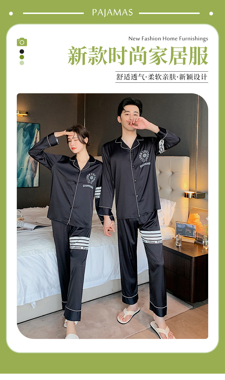 커플 잠옷 여성 온라인 붉은 뜨거운 판매 봄과 가을 아이스 실크 얇은 패션 홈웨어 세트 남성 긴팔 패션 패션스토어 가기