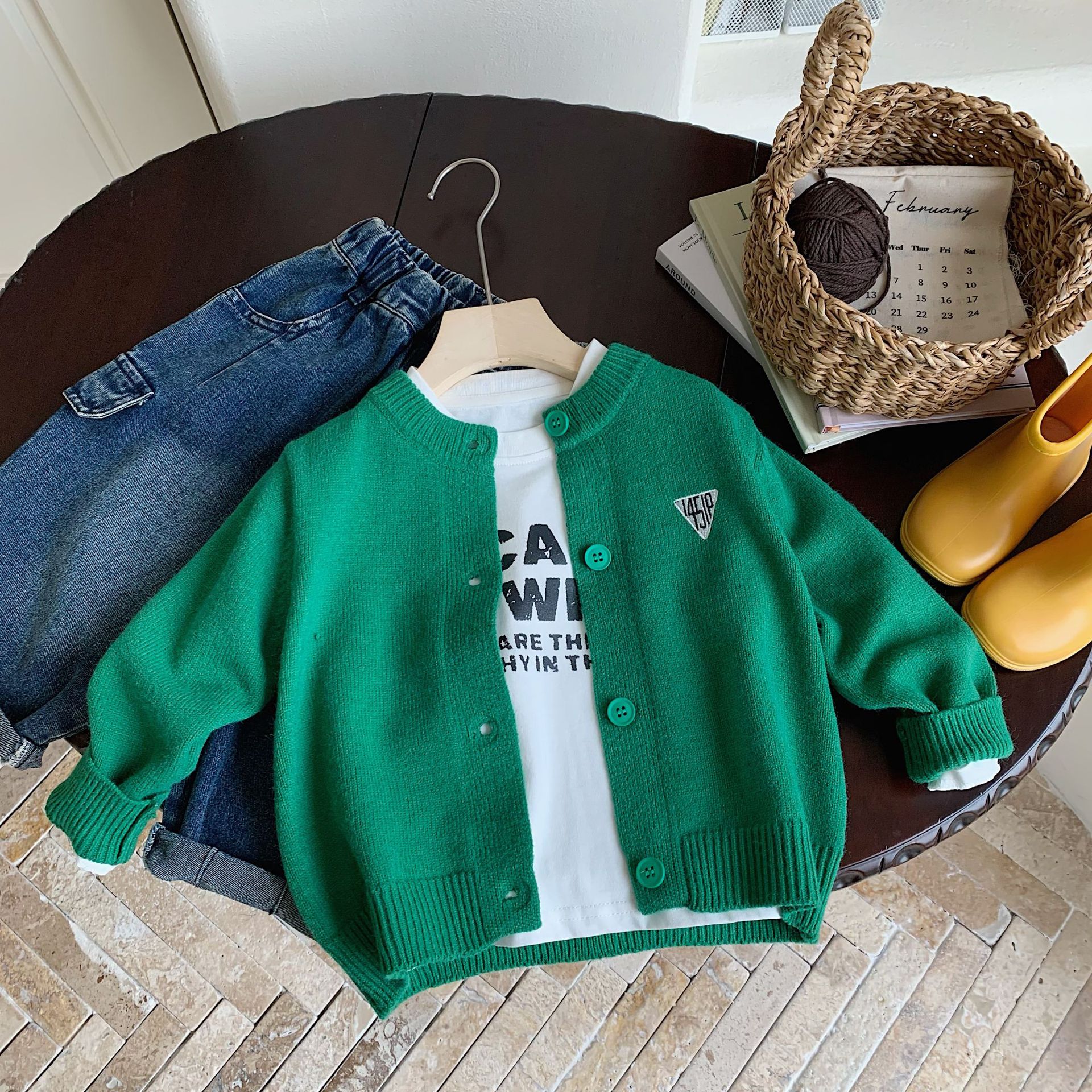 어린이 스웨터 Bangcheng 2025 가을 신상 아동복 자수 작은 로고 재킷 남아용 모직 가디건 MY0015스토어 가기