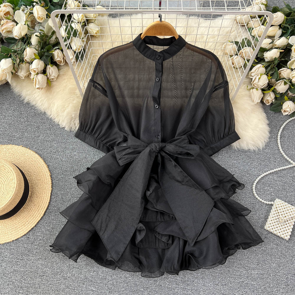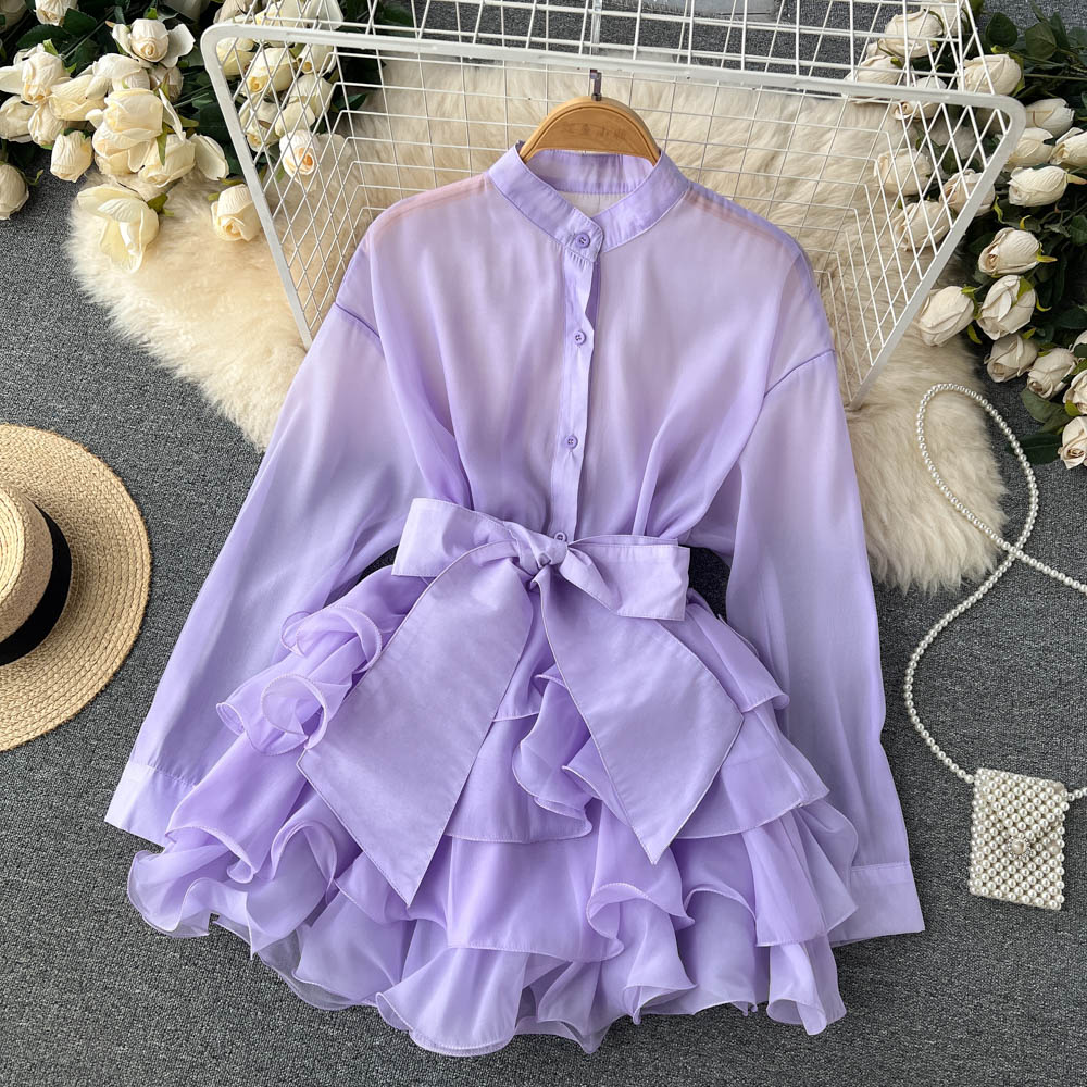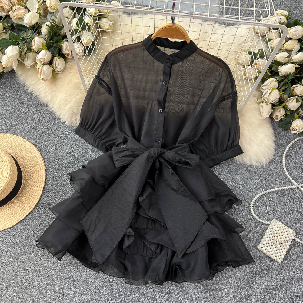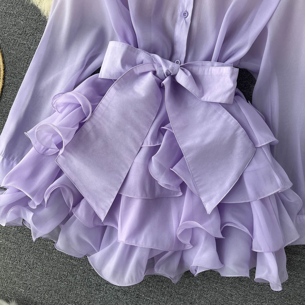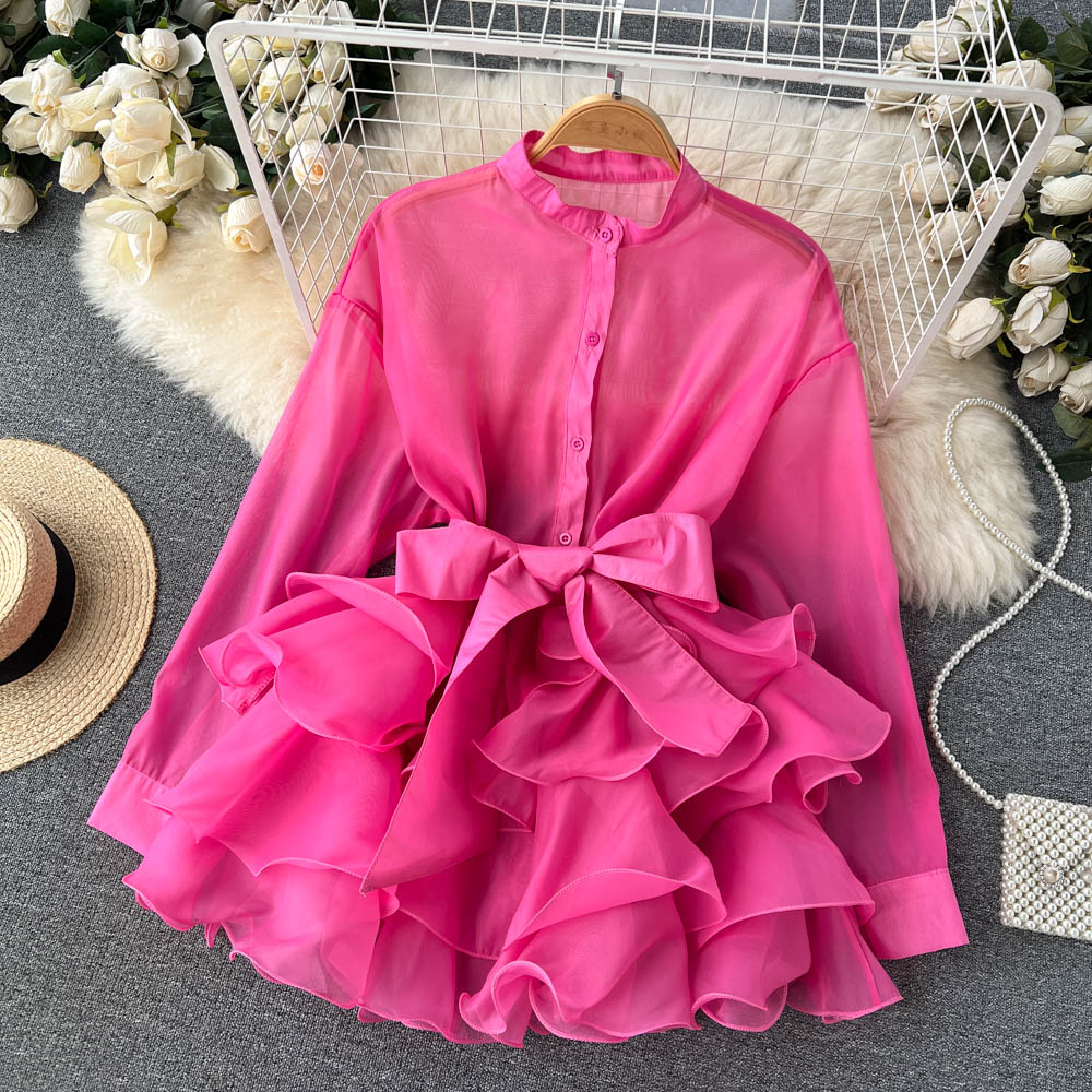 시폰 세련된 최고의 여성 가을 새로운 주름 서양식 하이 엔드 디자인 나비 스트랩 틈새 셔츠스토어 가기
