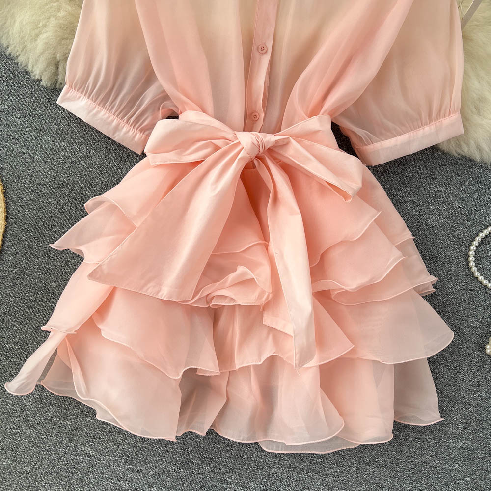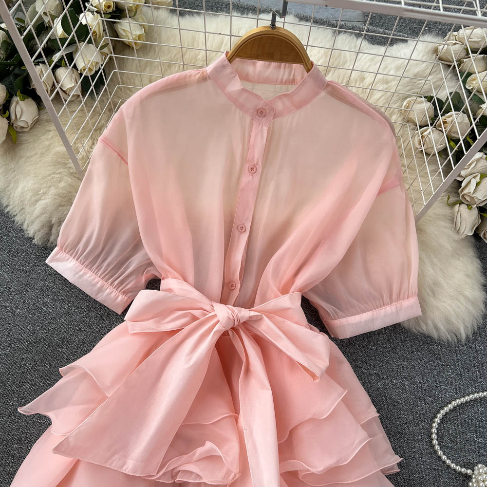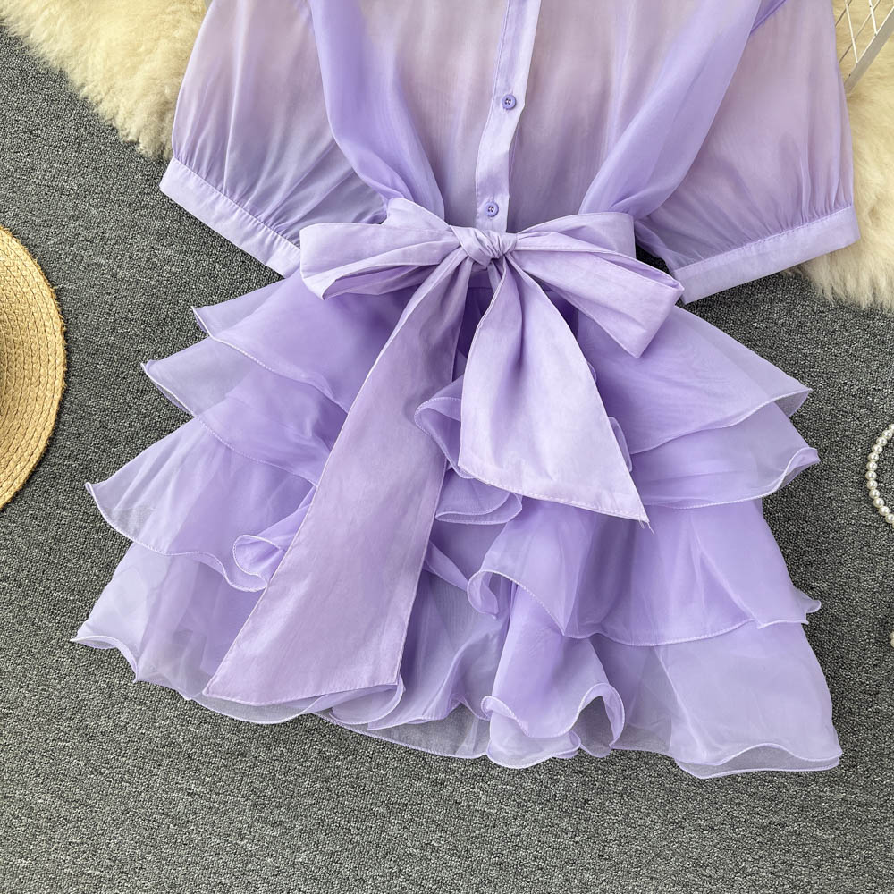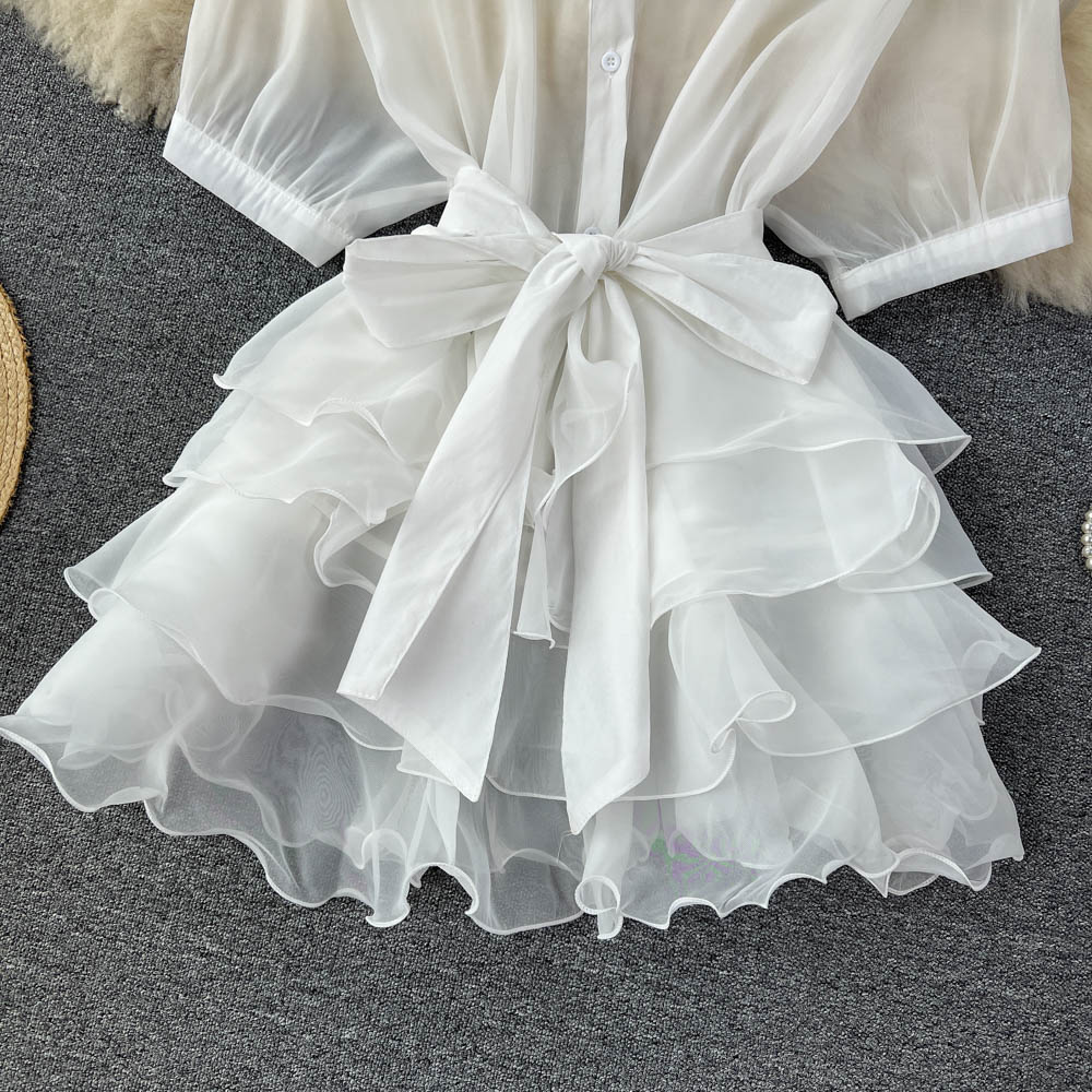 시폰 세련된 최고의 여성 가을 새로운 주름 서양식 하이 엔드 디자인 나비 스트랩 틈새 셔츠스토어 가기