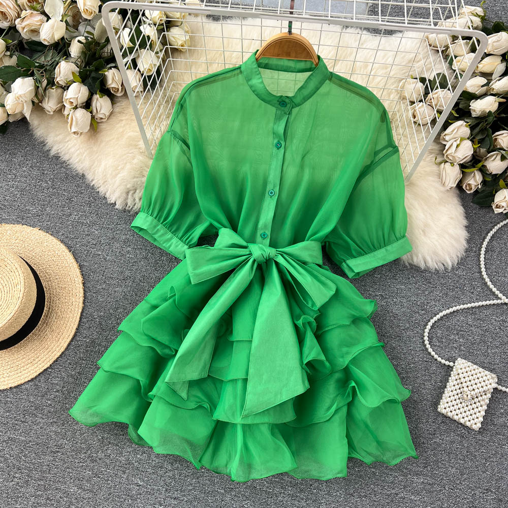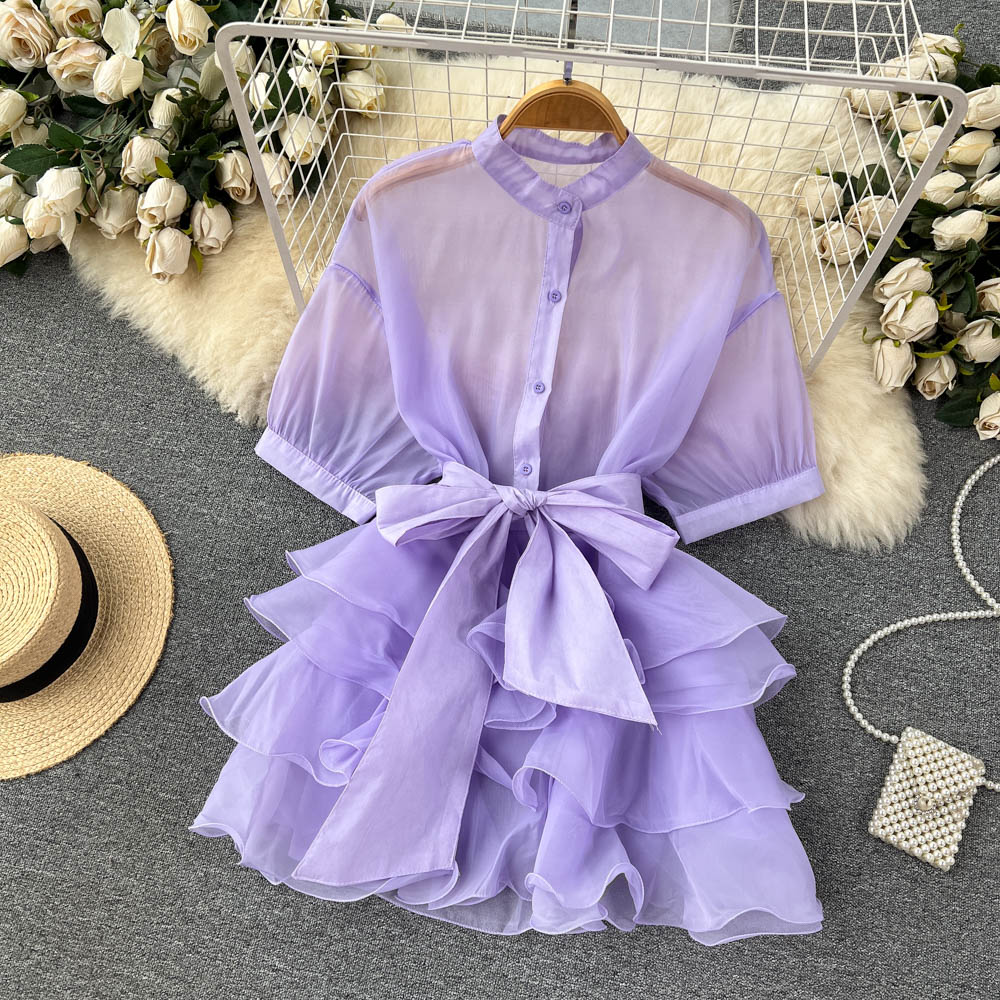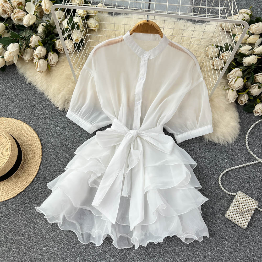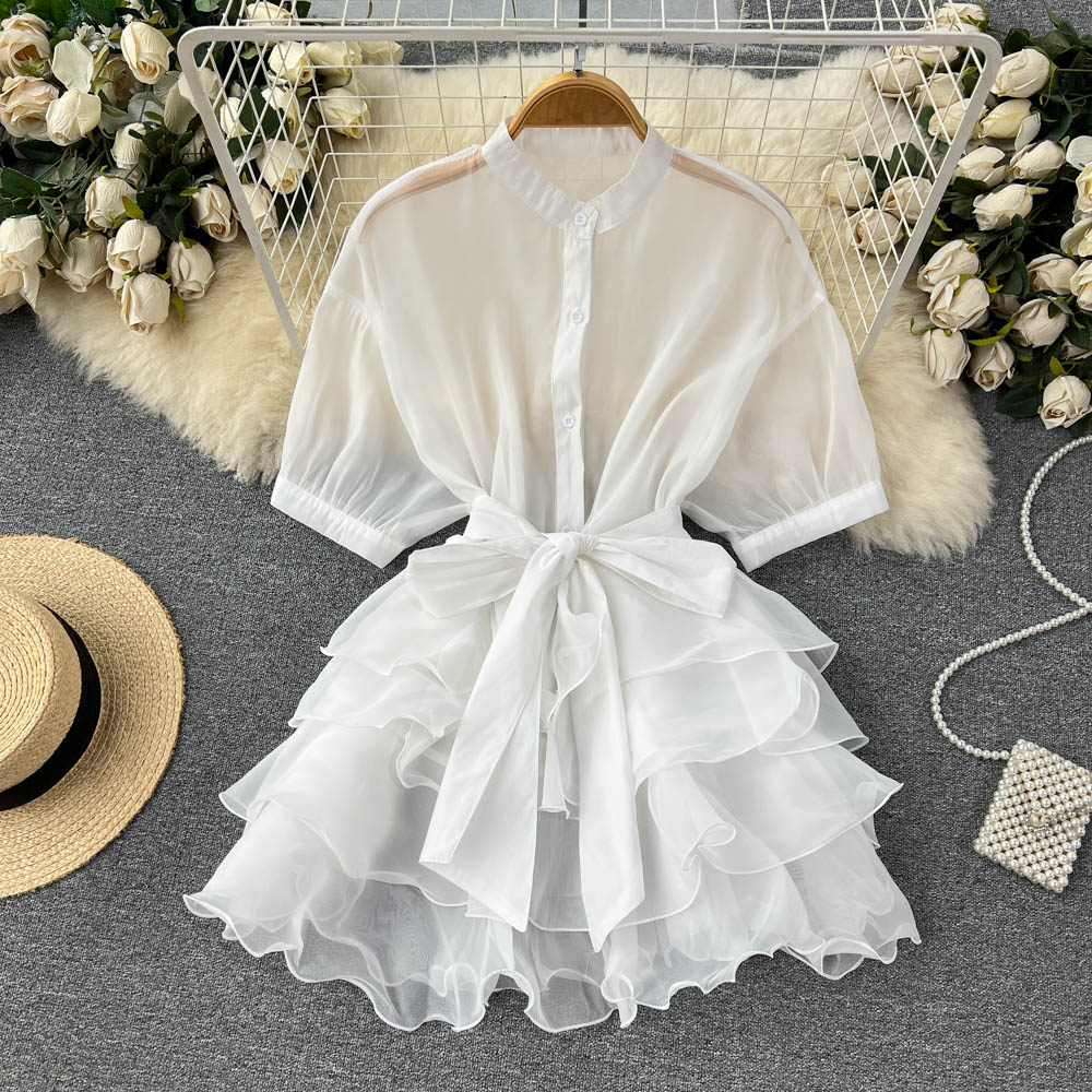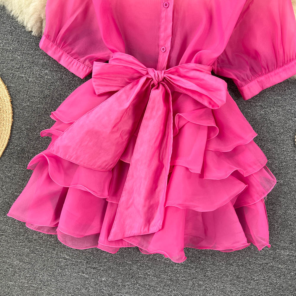 시폰 세련된 최고의 여성 가을 새로운 주름 서양식 하이 엔드 디자인 나비 스트랩 틈새 셔츠스토어 가기