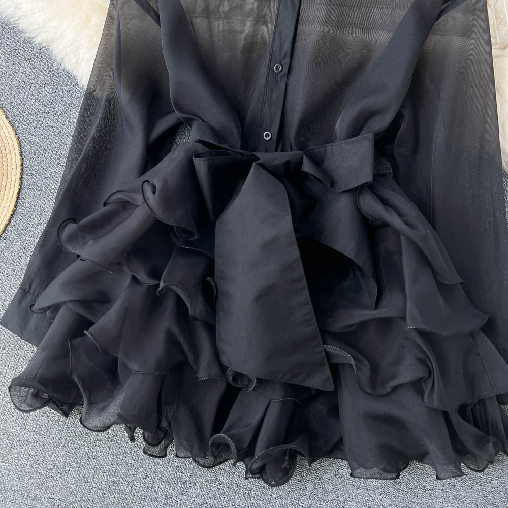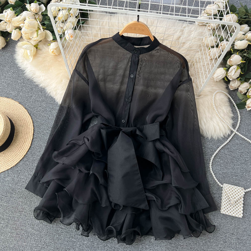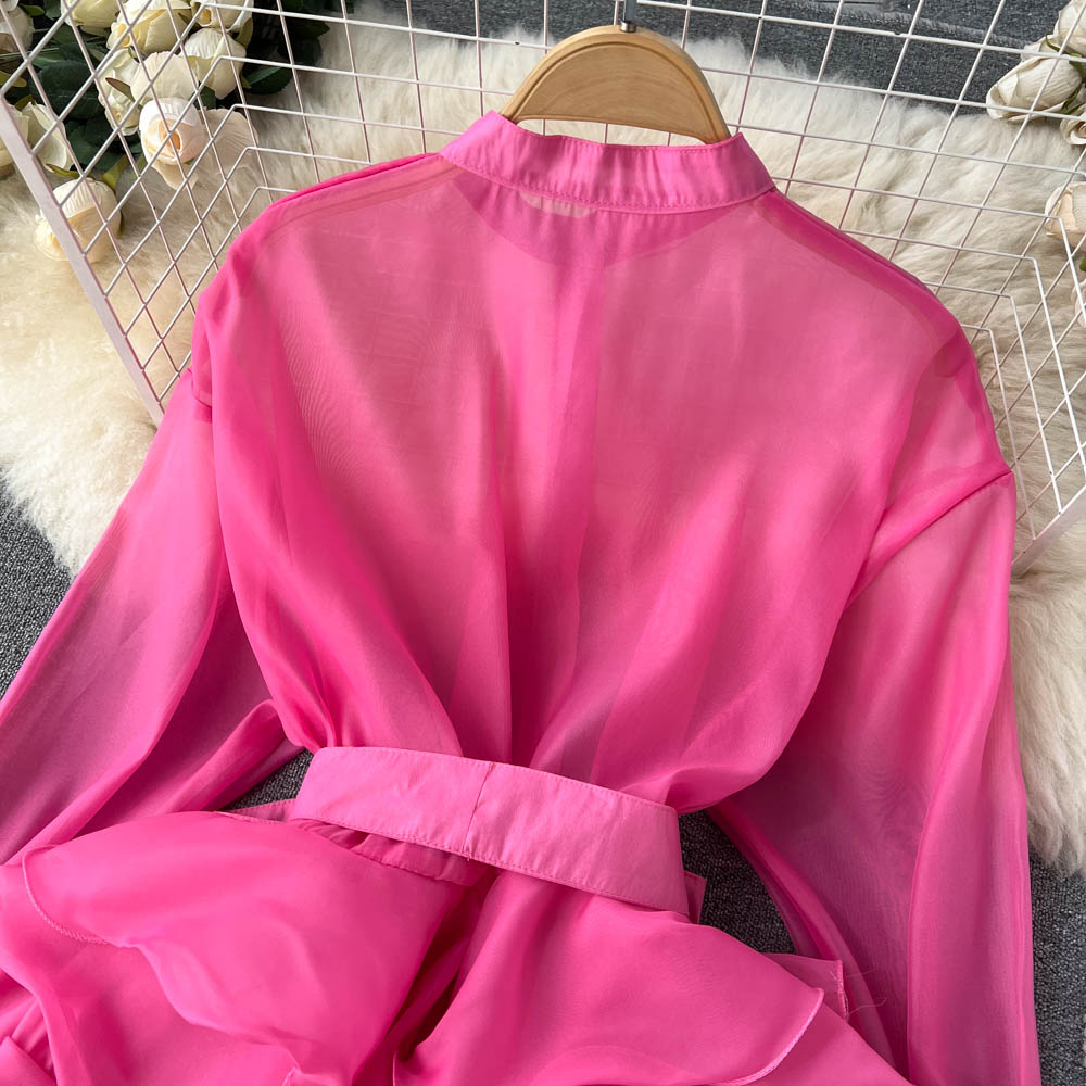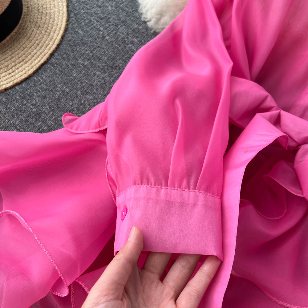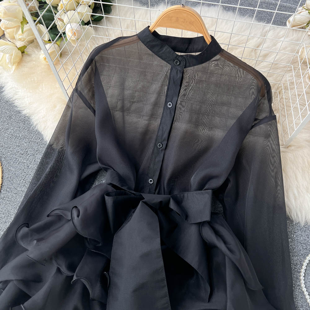 시폰 세련된 최고의 여성 가을 새로운 주름 서양식 하이 엔드 디자인 나비 스트랩 틈새 셔츠