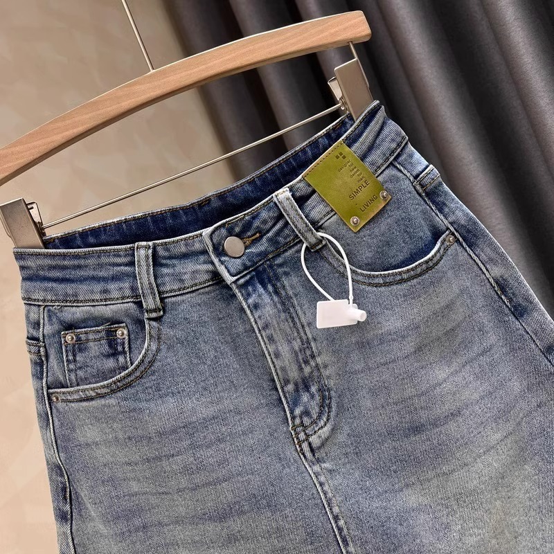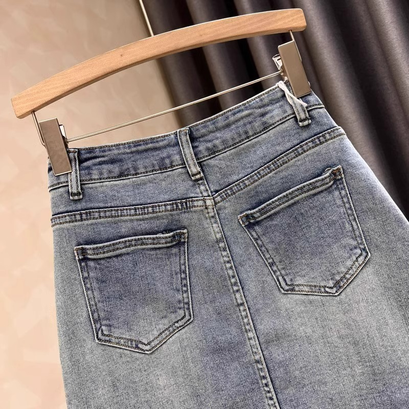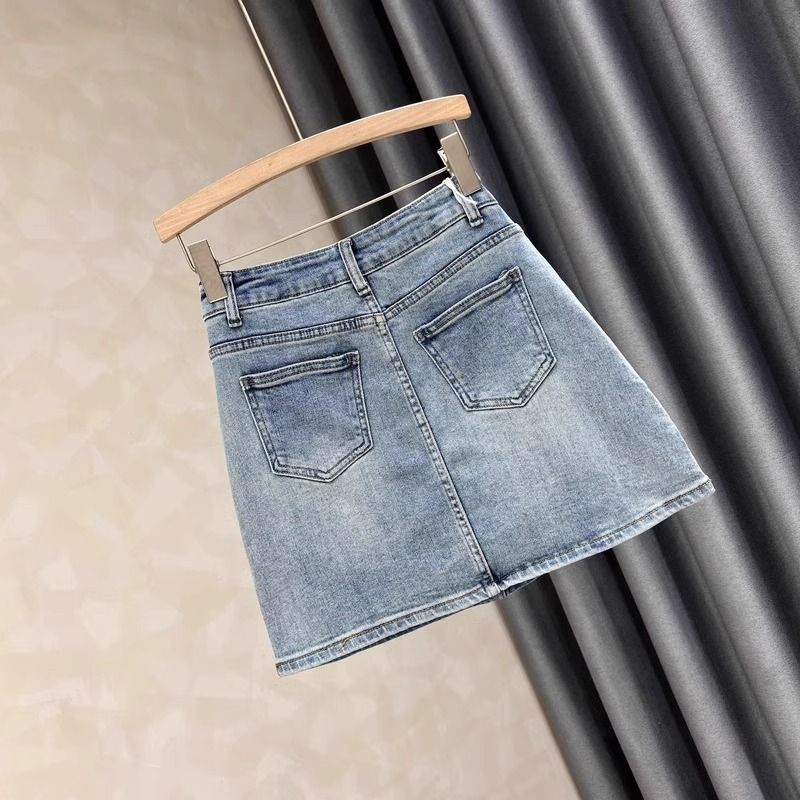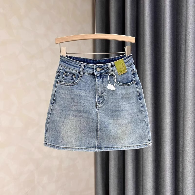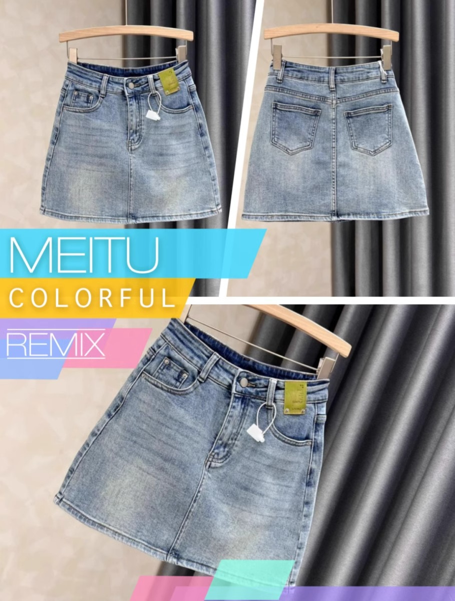 봄과 여름 밝은 색의 데님 짧은 치마 여성의 나이-다재다능한 슬리밍 간단한 복고풍 하이 허리-라인 엉덩이 스커트 스커트스토어 가기