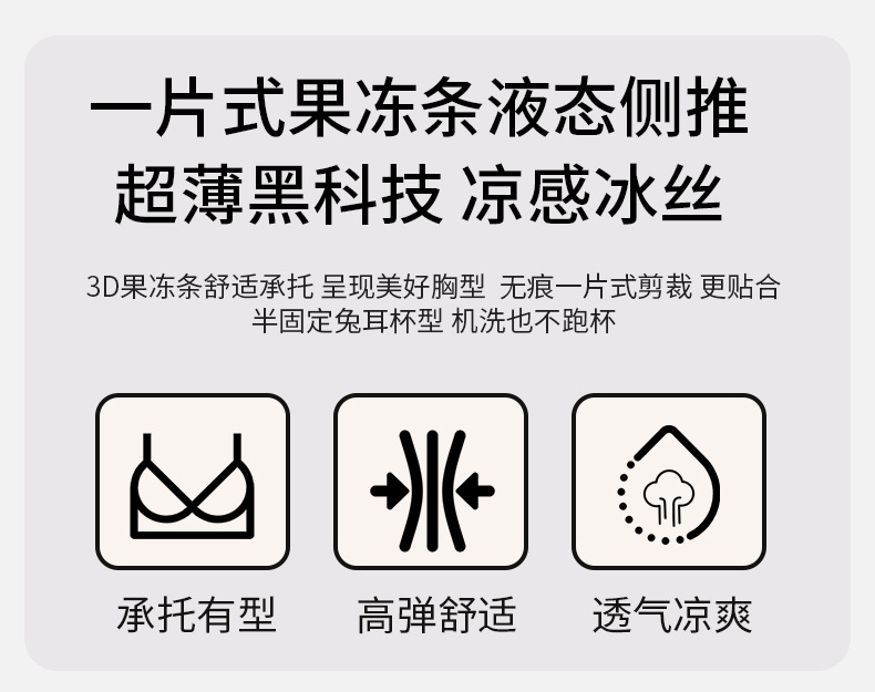 젤리 아이스 실크 토끼 귀 컵 큰 가슴 작은 강철 반지 여성 브래지어 추적없는 울트라 얇은 여름 속옷