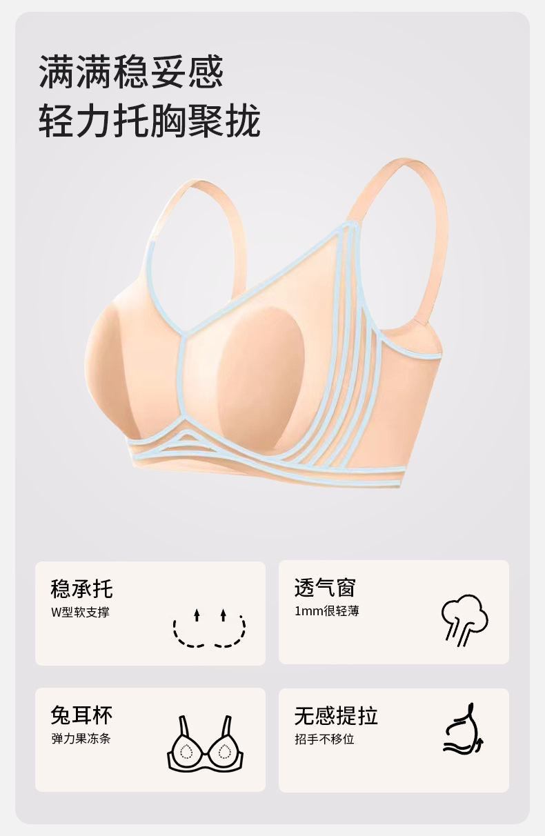 젤리 아이스 실크 토끼 귀 컵 큰 가슴 작은 강철 반지 여성 브래지어 추적없는 울트라 얇은 여름 속옷스토어 가기