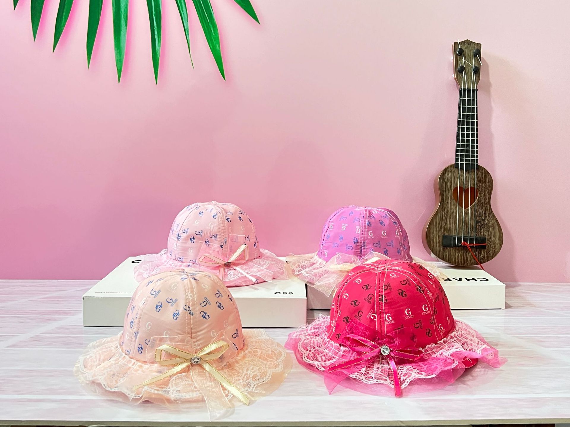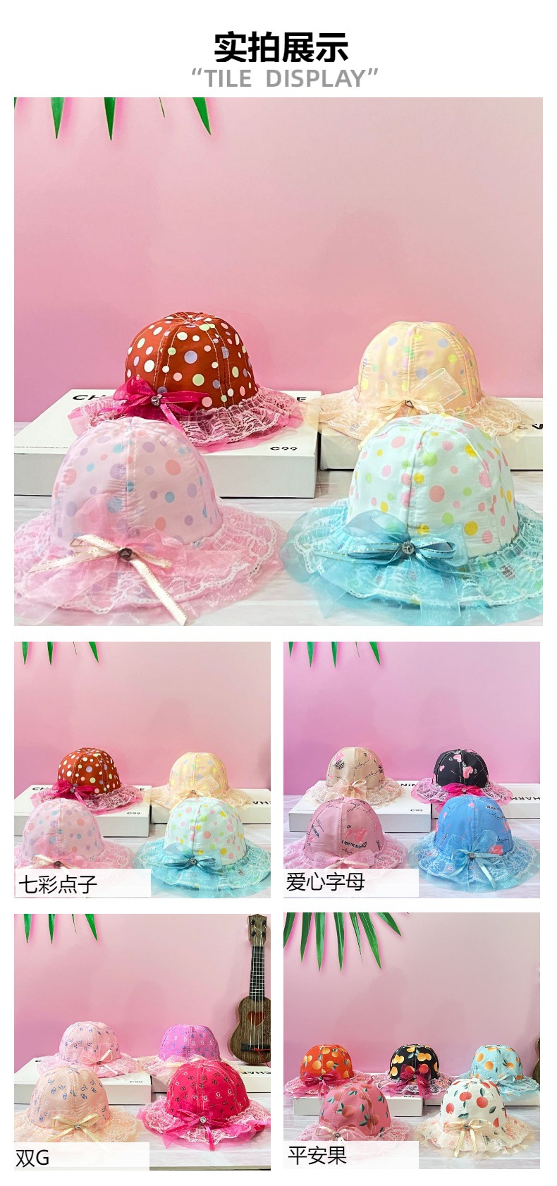봄과 여름 새로운 아기 소녀 복숭아 심장 활 공주 분지 메쉬 모자 레이스 어린이 어부 태양 모자스토어 가기