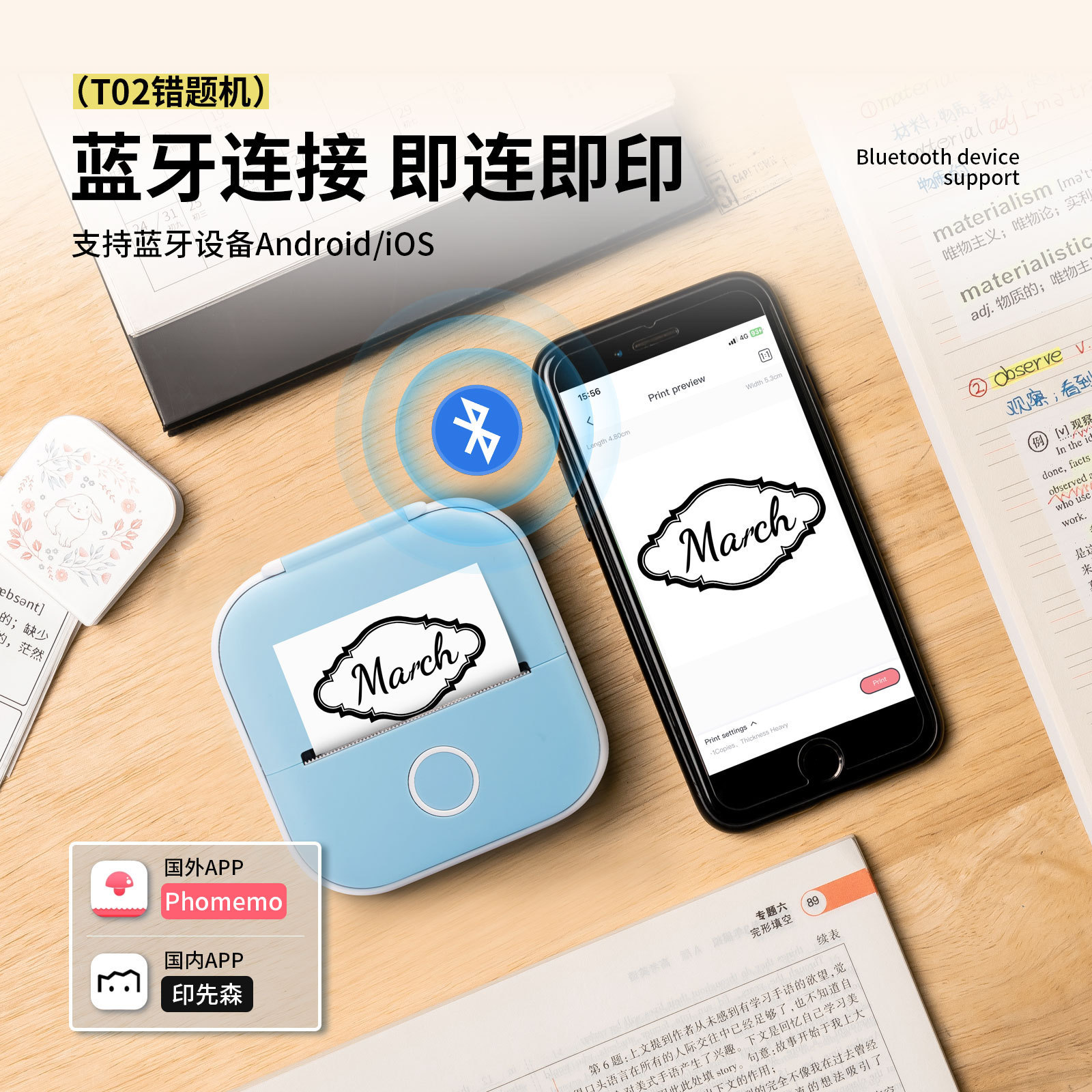 Phomemo 국경 열 프린터 미니 휴대용 블루투스 휴대 전화 잘못된 라벨 홈 학생 사무실스토어 가기